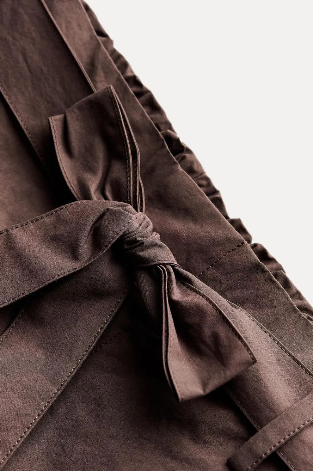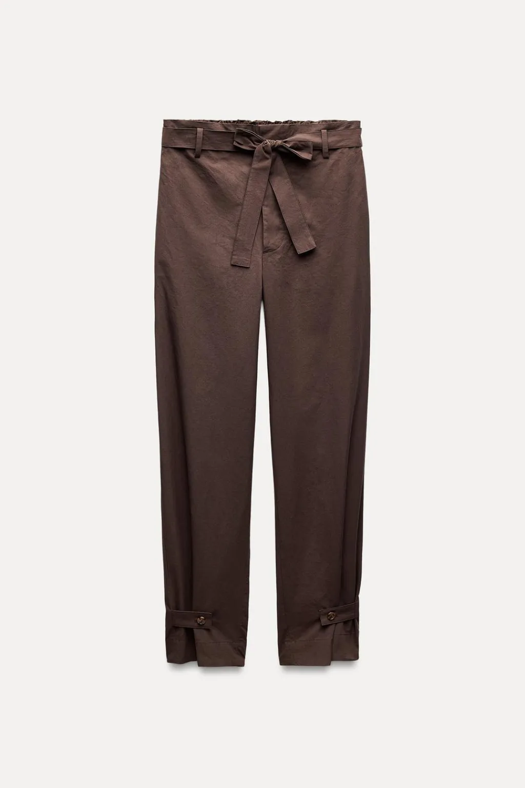 Pantalón confeccionado en hilatura de algodón 100%. Tiro medio y cintura con trabillas. Cinturón en mismo tejido ajustable con lazadas. Bolsillos laterales. Detalle de trabilla con botón en bajo. Cierre frontal con cremallera, botón y ganchos metálicos.