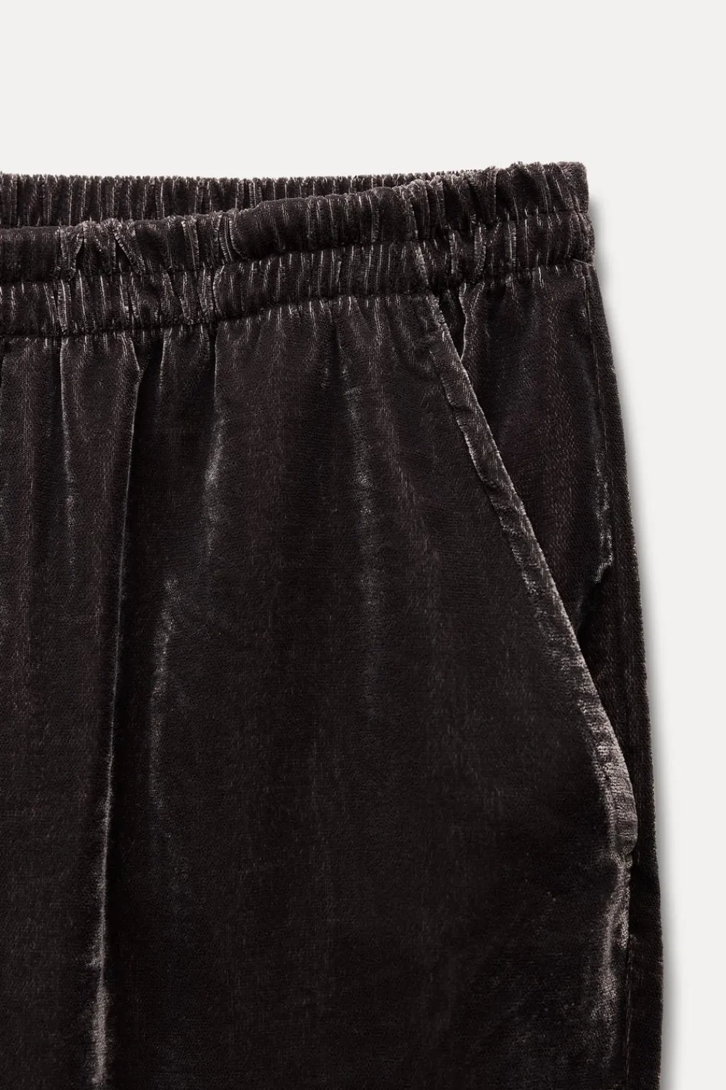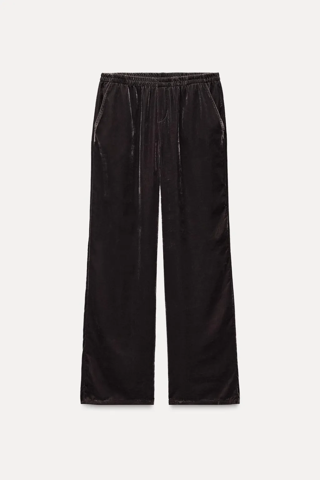 Pantalón de tiro medio y cintura elástica. Bolsillos laterales. Pierna recta.