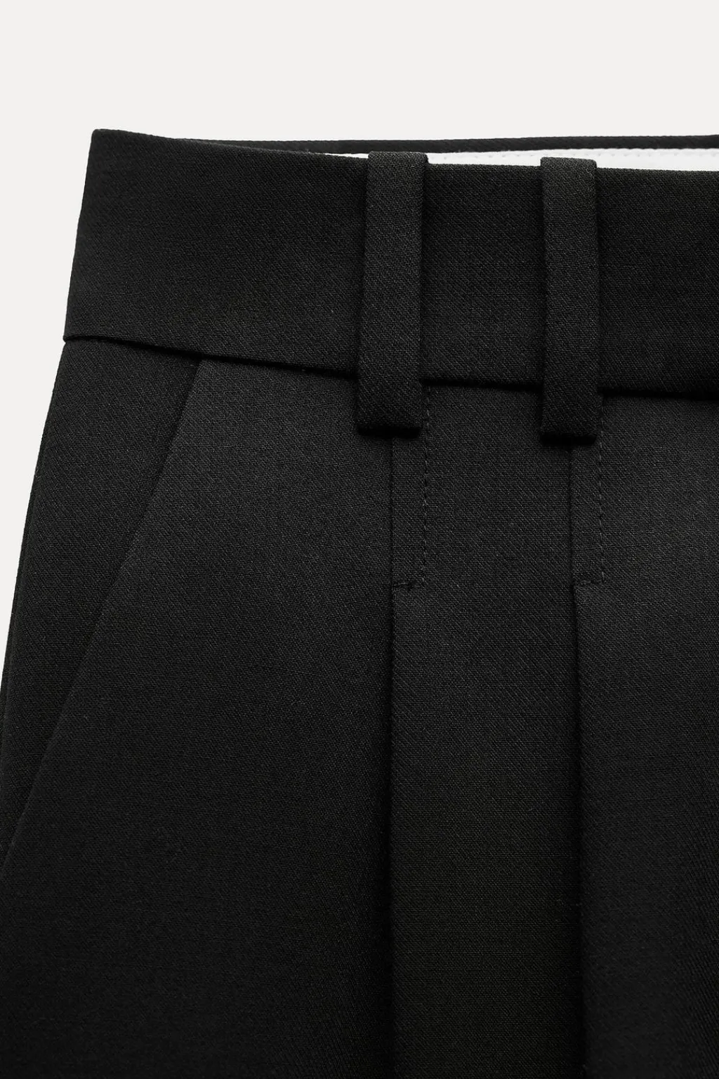 Pantalón de tiro alto con pinzas delanteras. Bolsillos frontales y falsos bolsillos de vivo en espalda. Pernera recta. Cierre frontal con cremallera, botón interior y gancho.