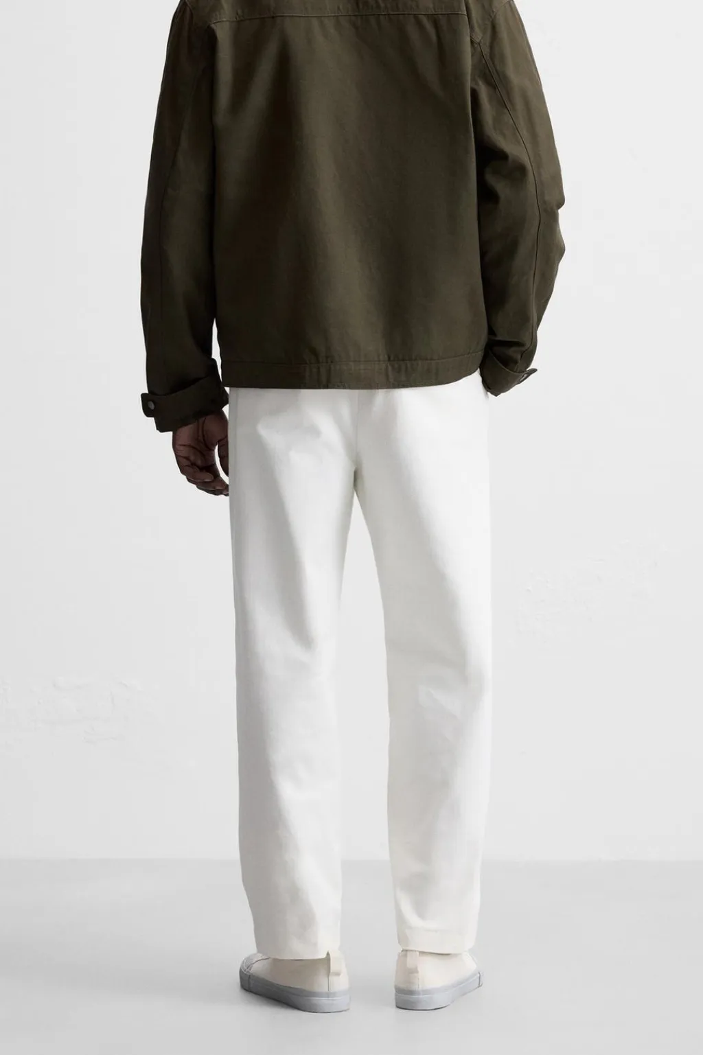 Pantalón regular fit confeccionado en tejido de algodón. Bolsillos delanteros y detalle de bolsillos traseros de vivo. Cierre frontal con cremallera y botón.