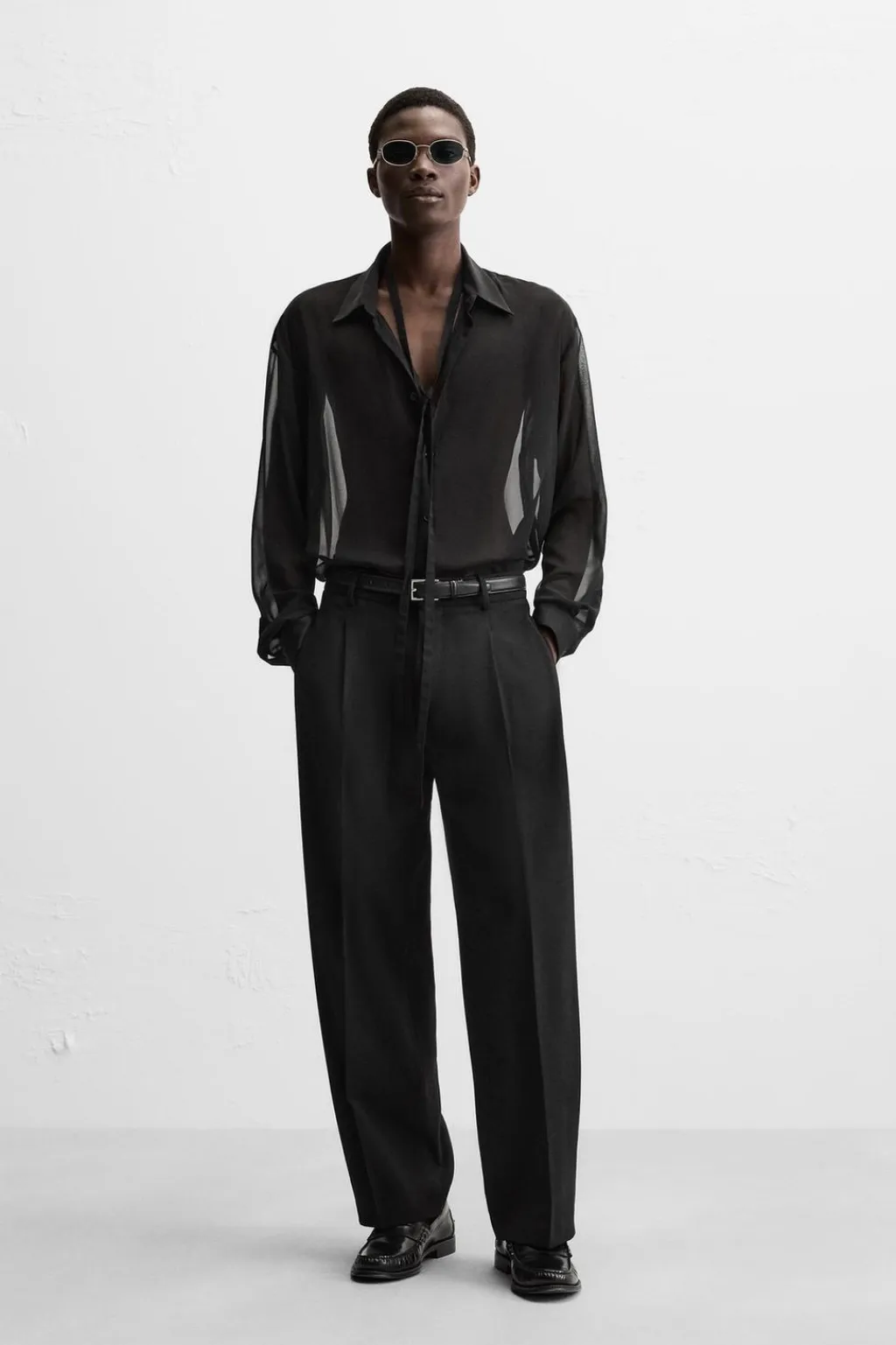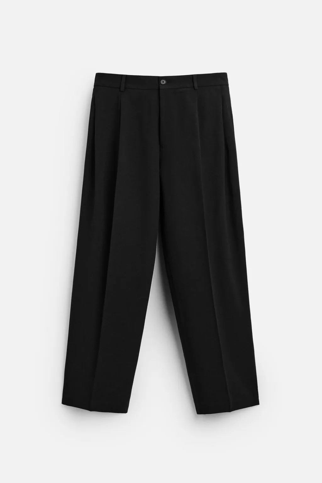Pantalón relaxed fit. Cintura con detalle de pliegues en delantero. Bolsillos frontales y detalle de bolsillos traseros de vivo. Cierre frontal con cremallera y botón.
