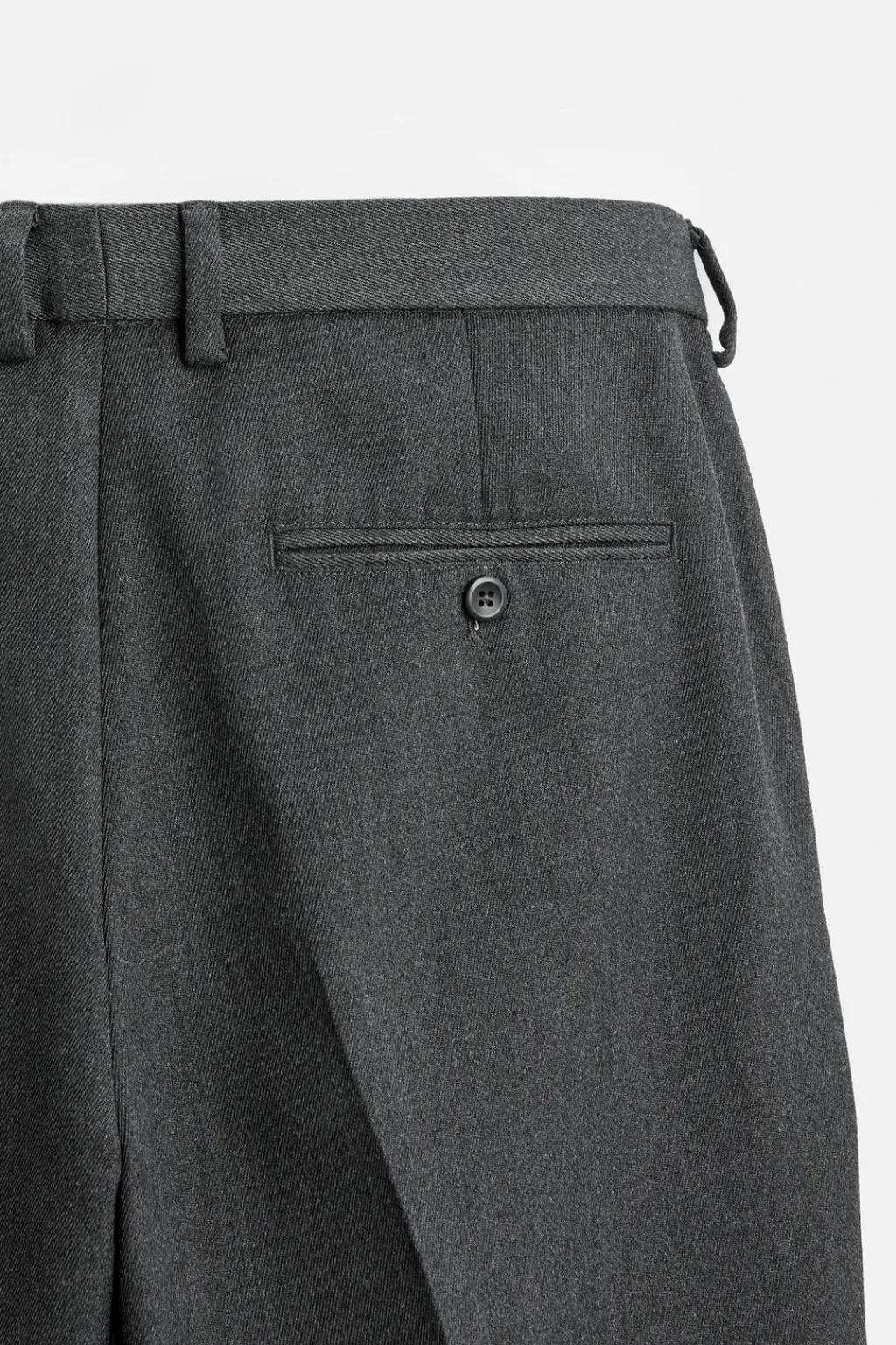 Pantalón straigth fit confeccionado en tejido de algodón con estructura diagonal. Bolsillos delanteros y detalle de bolsillos traseros de vivo. Cierre frontal con cremallera y botón.
