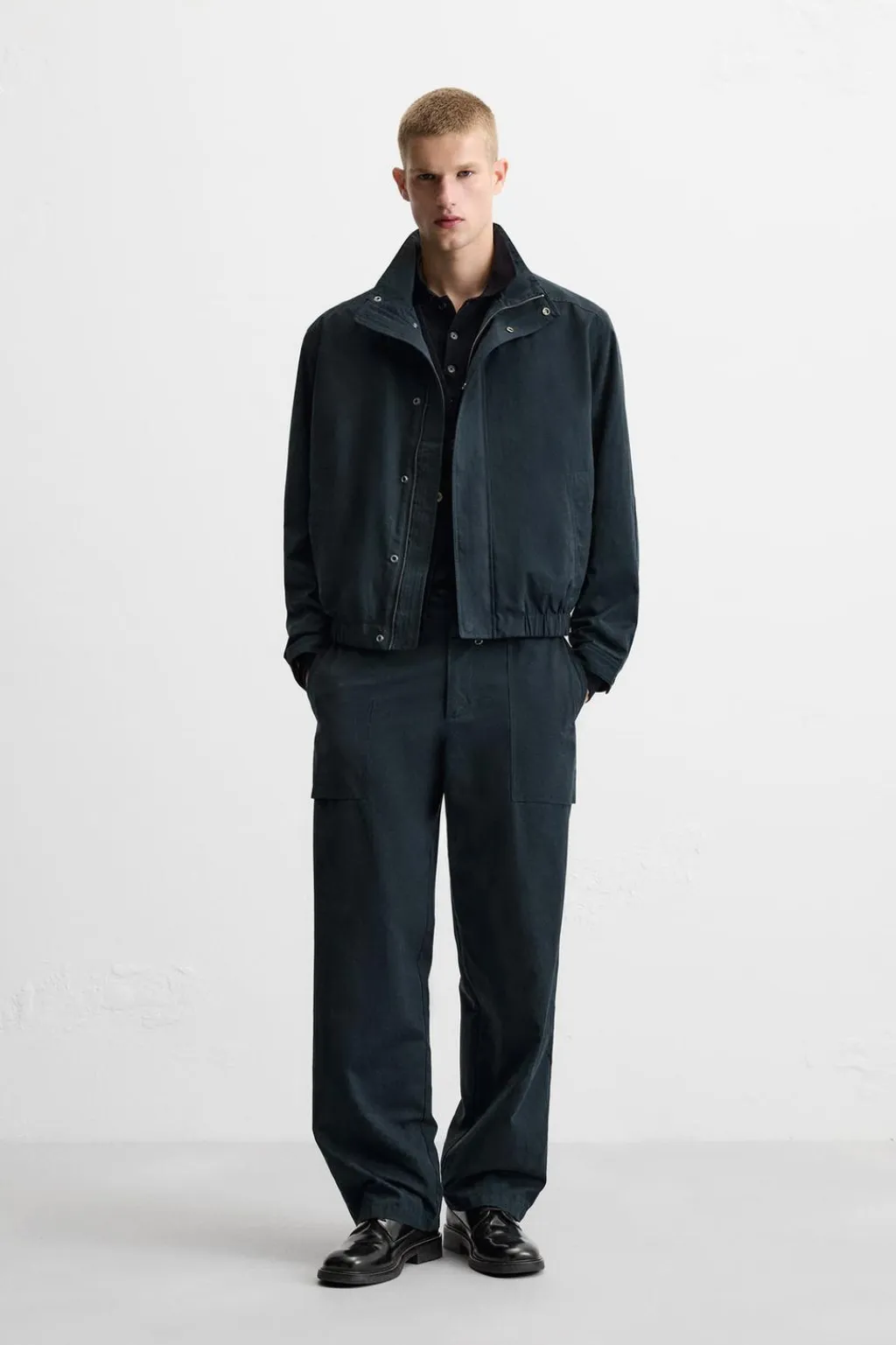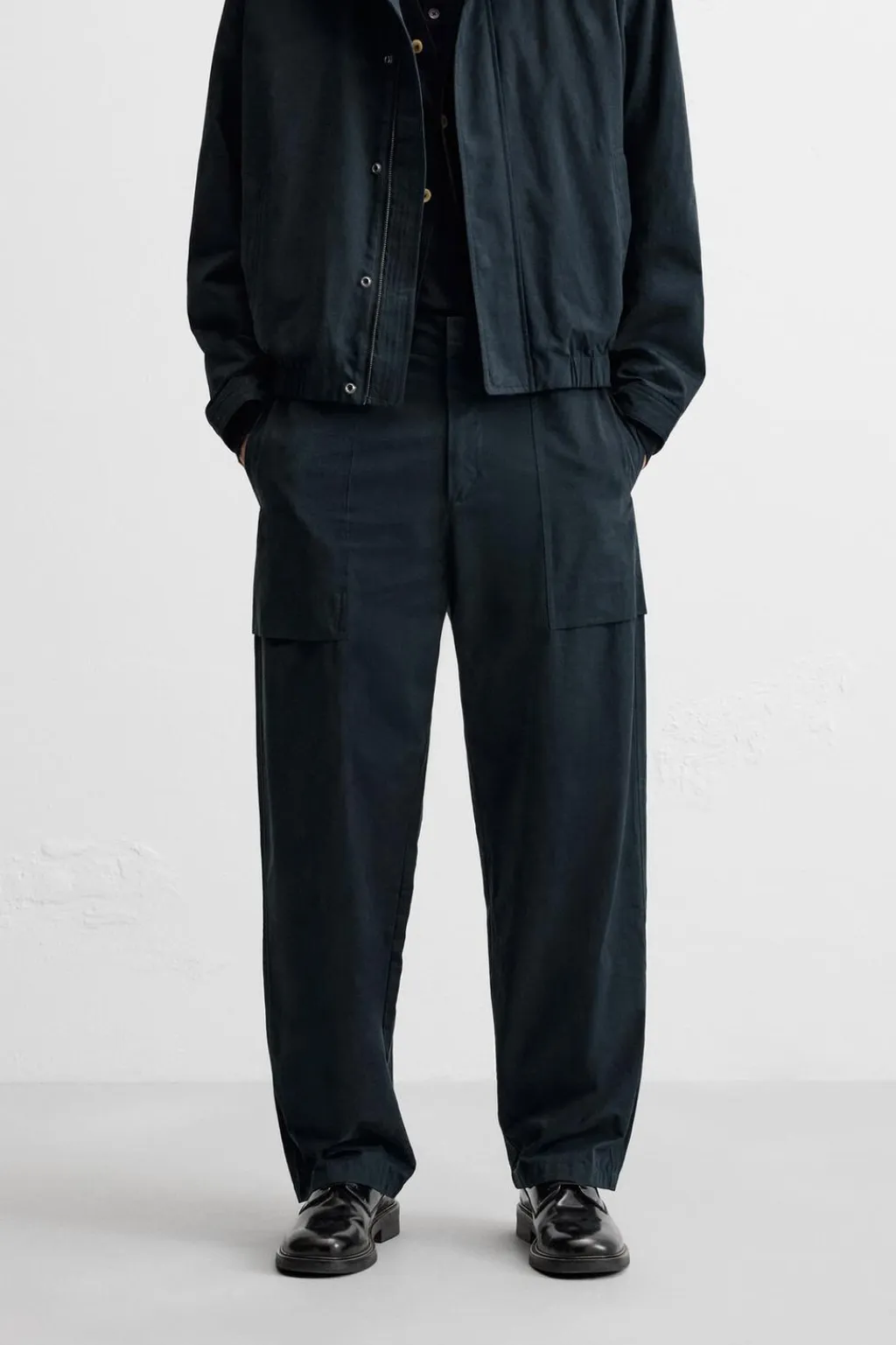 Pantalón straight fit confeccionada en tejido técnico con acabado aterciopelado. Bolsillos frontales de plastrón y detalle de bolsillos traseros de vivo. Cierre frontal con cremallera y botón a presión oculto.