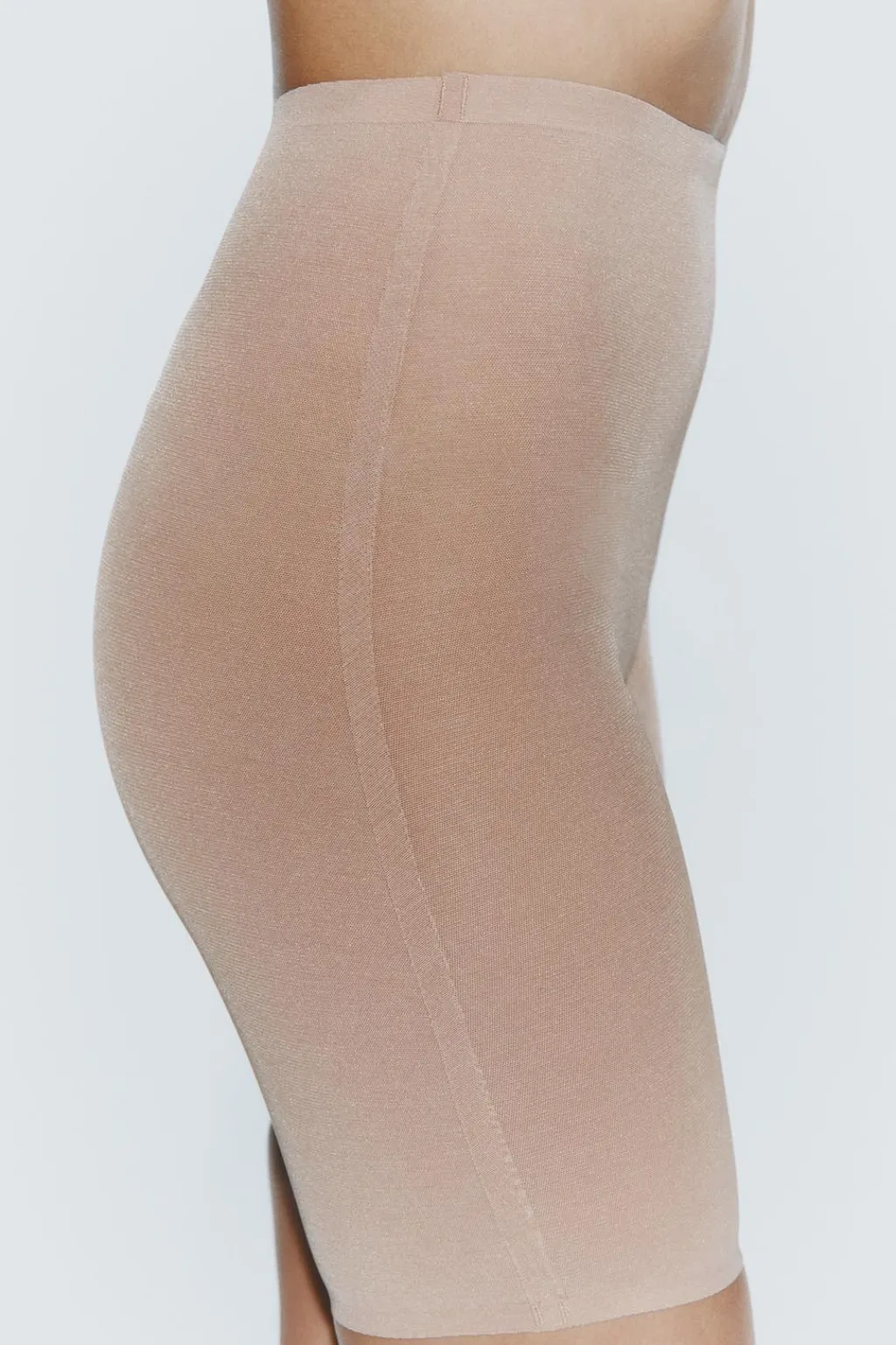 Shorts de tiro alto confeccionados con poliamida. Efecto reductor que realza y estiliza la figura. Cintura interior termosellada para un mayor efecto plano.