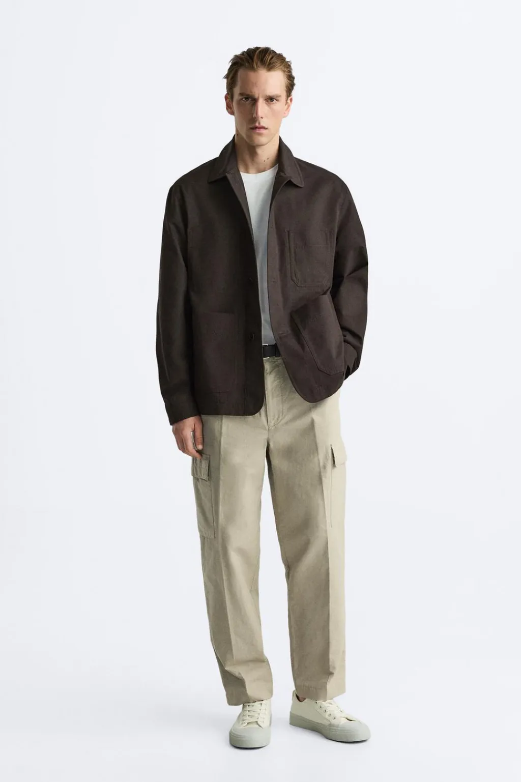 Sobrecamisa confeccionada en tejido con mezcla de algodón. Cuello solapa y manga larga acabada en puño con botón. Bolsillos de plastrón en delantero. Cierre frontal de botonadura.