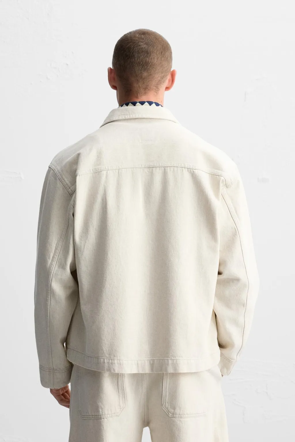 Sobrecamisa confeccionada en denim con mezcla de algodón y cáñamo Cuello solapa y manga larga acabada en puño con botón. Bolsillos de plastrón en pecho y laterales en cadera. Efecto lavado. Cierre frontal con cremallera.