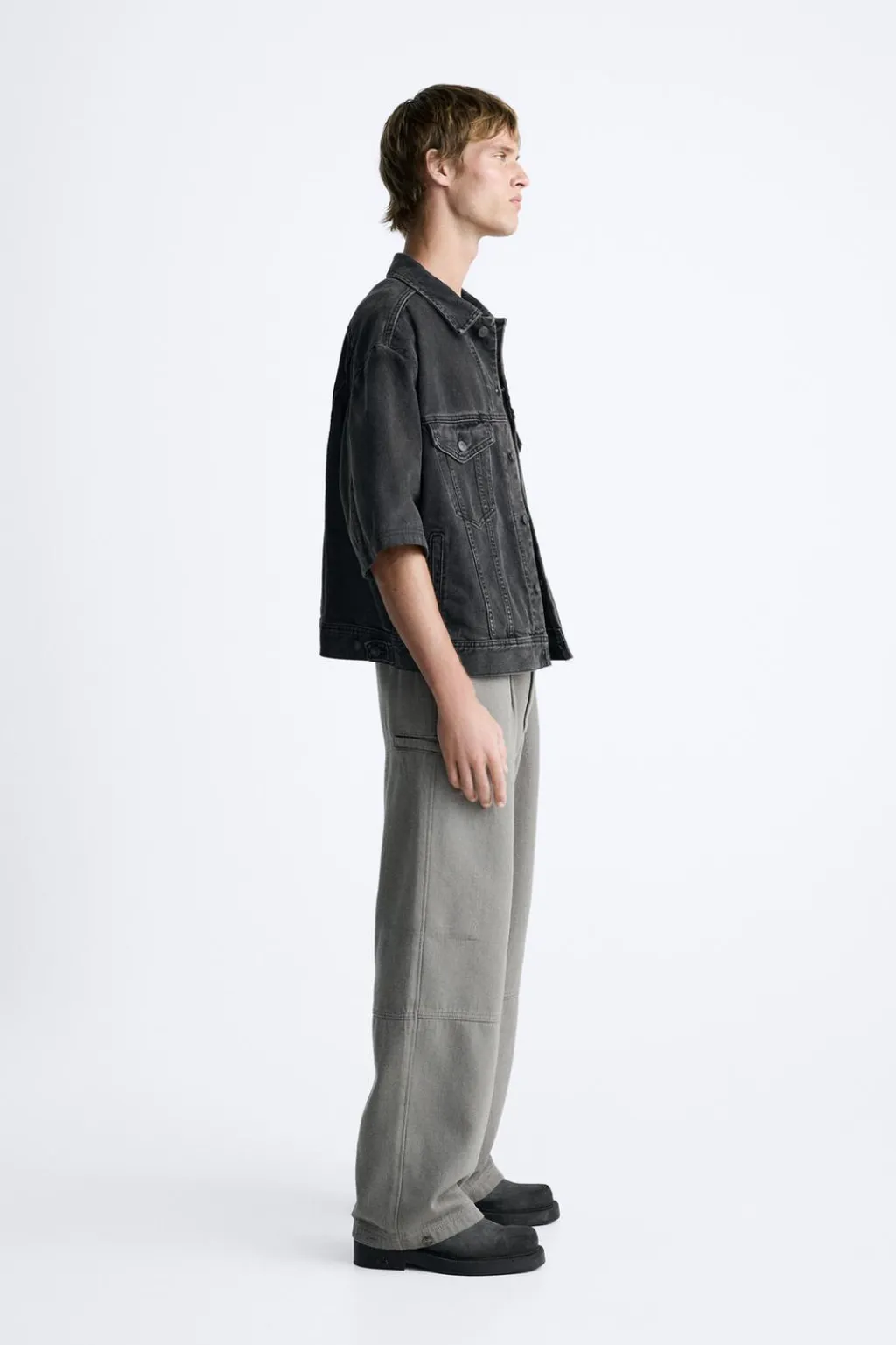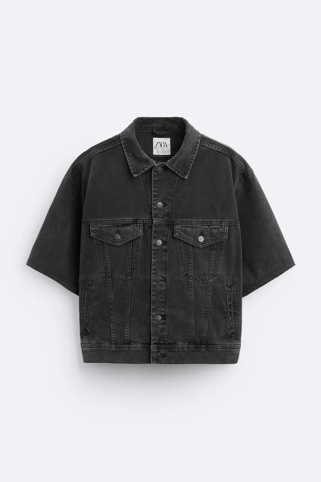 Sobrecamisa confecionada en denim de algodón. Cuello solapa y manga por debajo del codo acabada en puño con botón. Bolsillos de solapa en pecho y de vivo en cadera. Efecto lavado. Cierre frontal de botonadura.