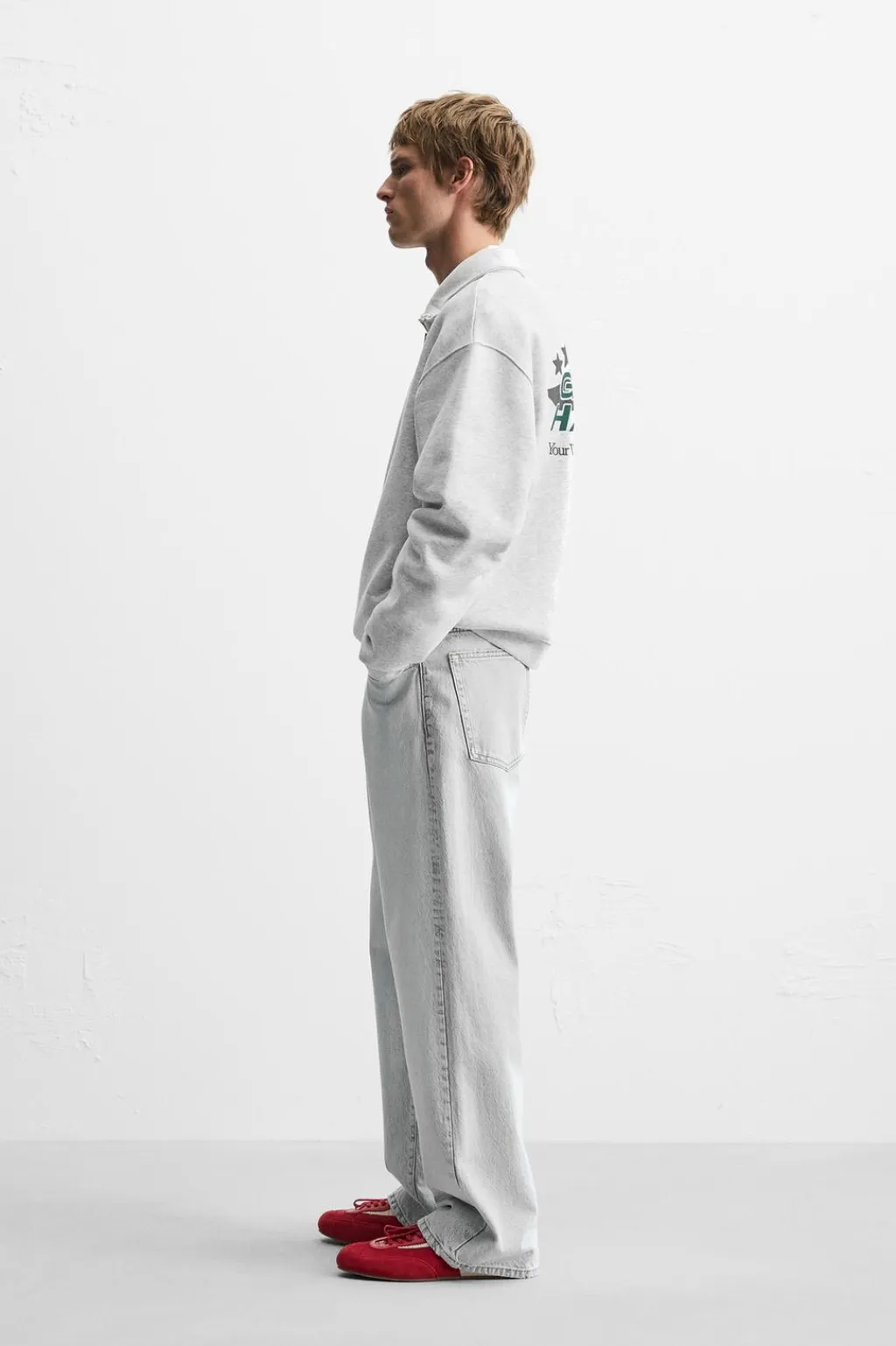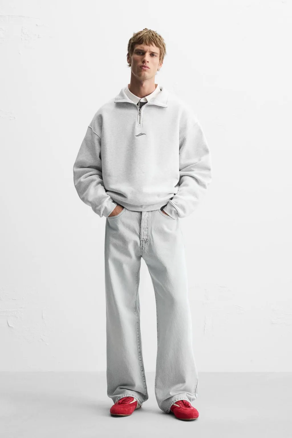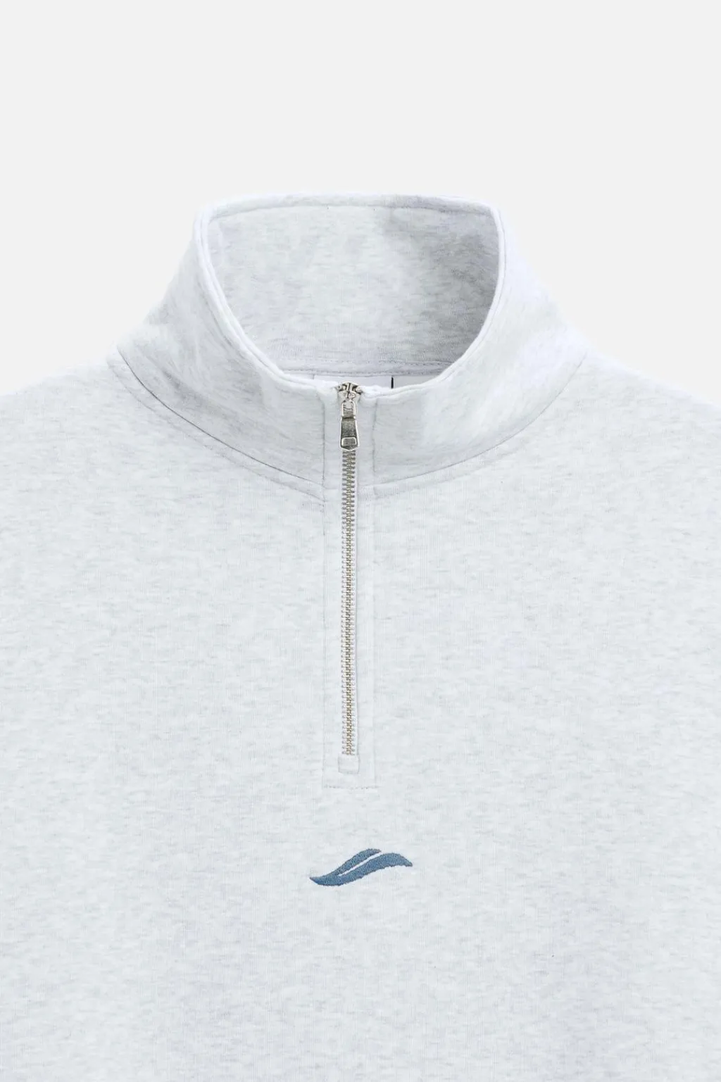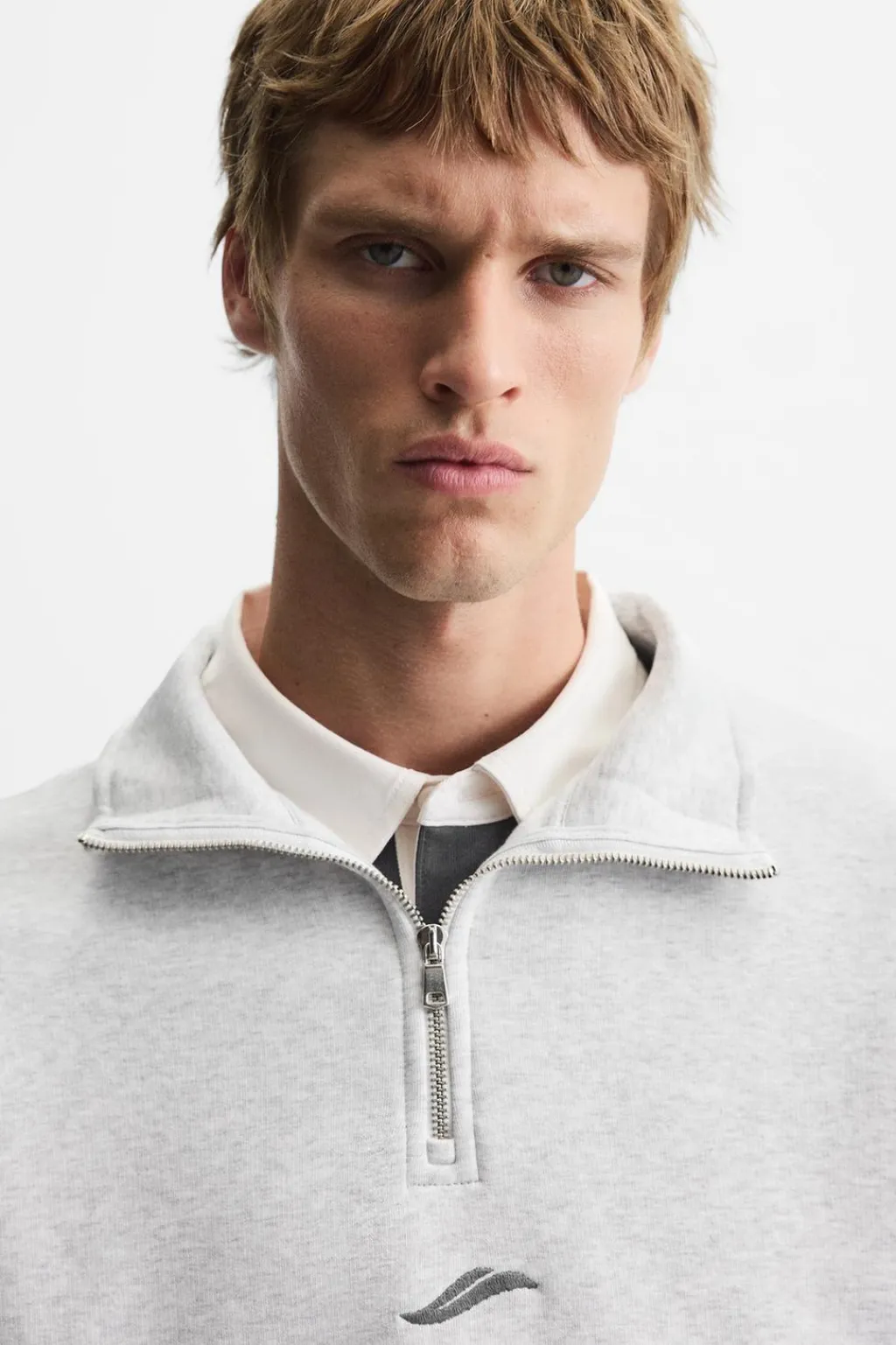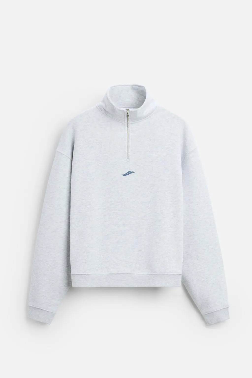 Sudadera relaxed fit confeccionada en tejido de algodón con el interior perchado. Cuello subido con cierre frontal de cremallera. Detalle de bordado combinado a contraste en delantero. Acabados en rib.