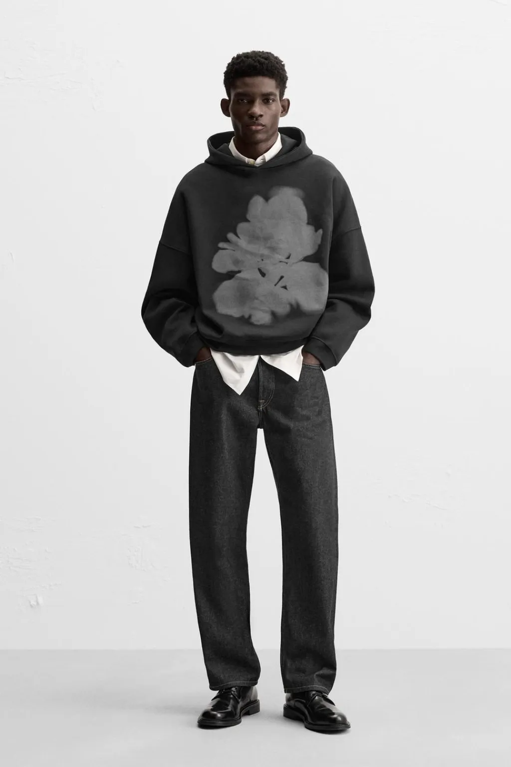 Sudadera hoodie relaxed fit, Cuello con capucha ajustable. Manga larga. Estampaciones combinadas a contraste en delantero y espalda. Acabados en rib.