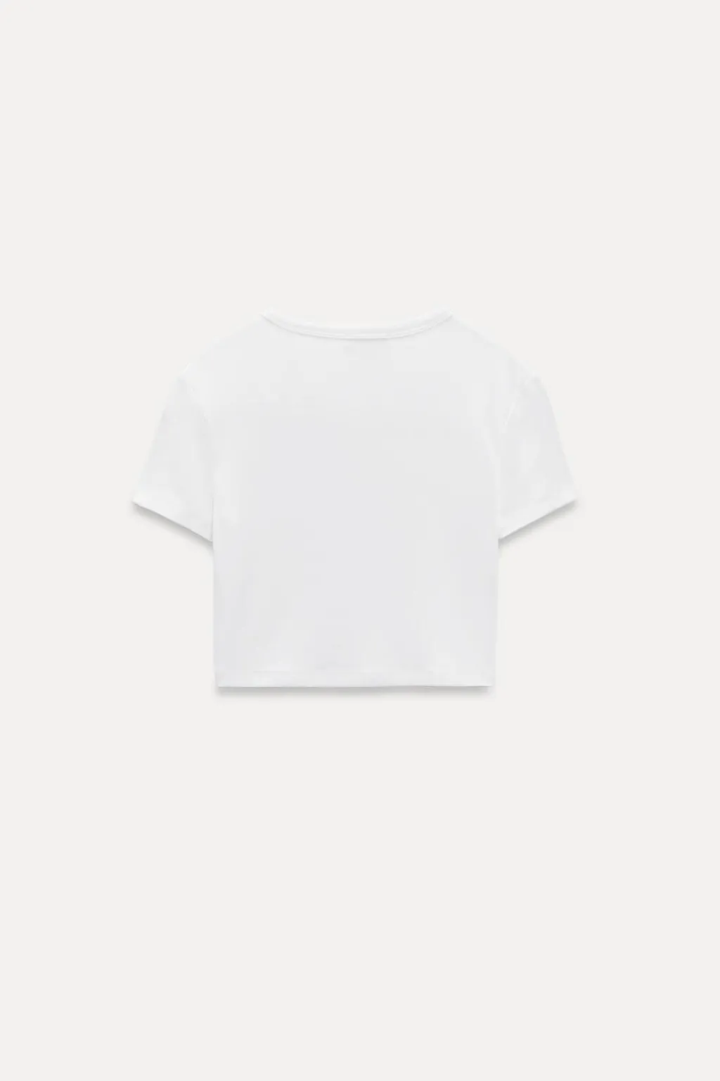 Top crop entallado de cuello redondo y manga corta.