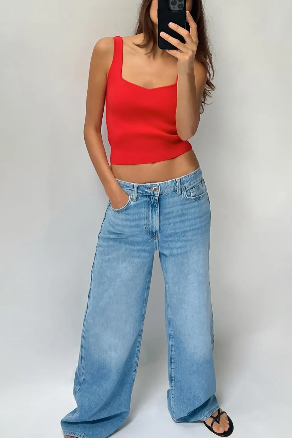 Top corto de escote recto y tirantes anchos.