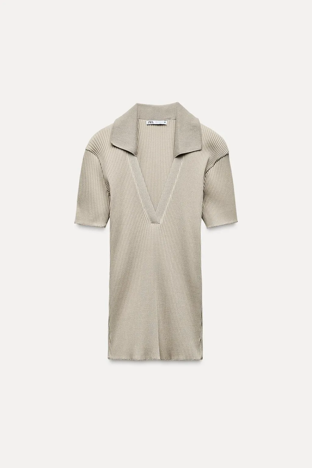 Top confeccionado en hilatura con mezcla de algodón. Cuello polo y escote pico con manga corta.