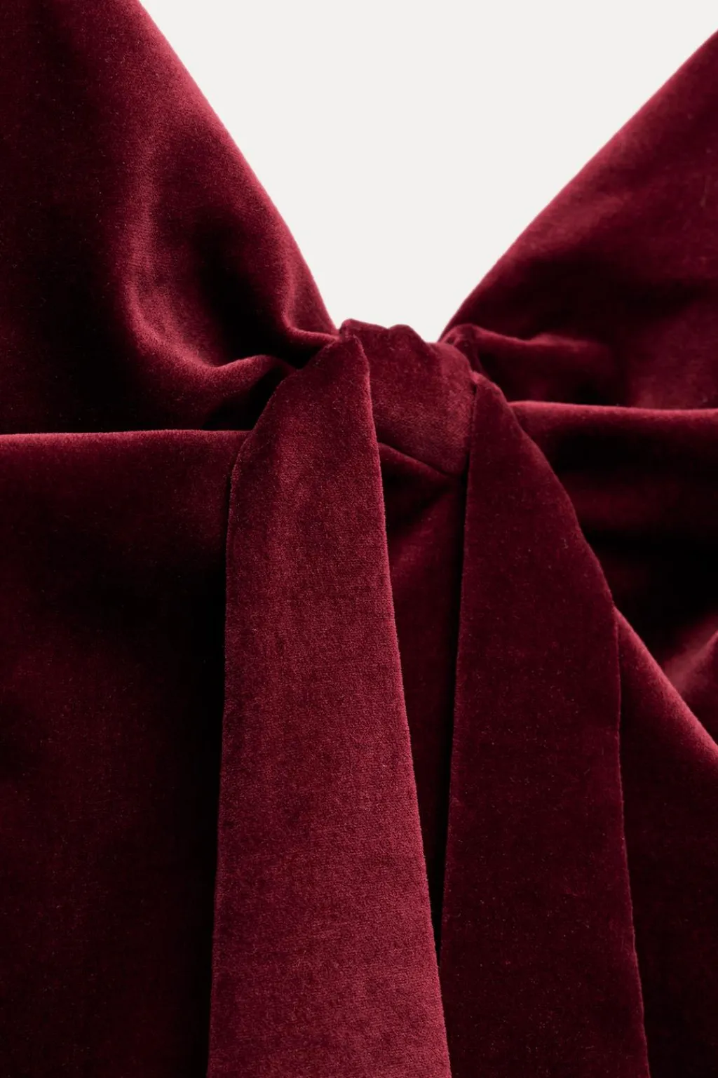 Top palabra de honor con hombros descubiertos confeccionado en terciopelo. Detalle de lazo en pecho. Forro interior combinado a tono. Cierre en espalda con cremallera oculta en costura.