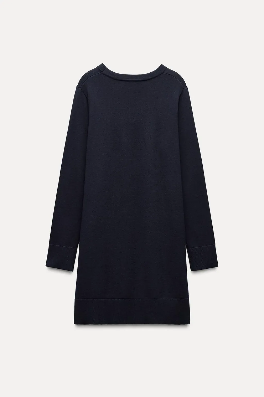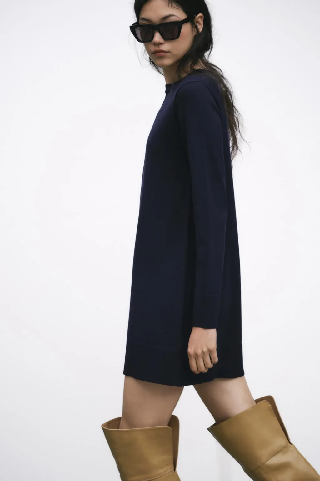 Vestido de cuello redondo y manga larga. Detalle de nervio delantero marcado. Acabados en rib.