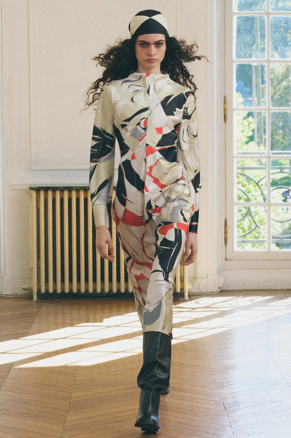 Vestido midi de cuello redondo y manga larga. Bajo acabado en línea evasé. Cierre en espalda con abertura y botón.