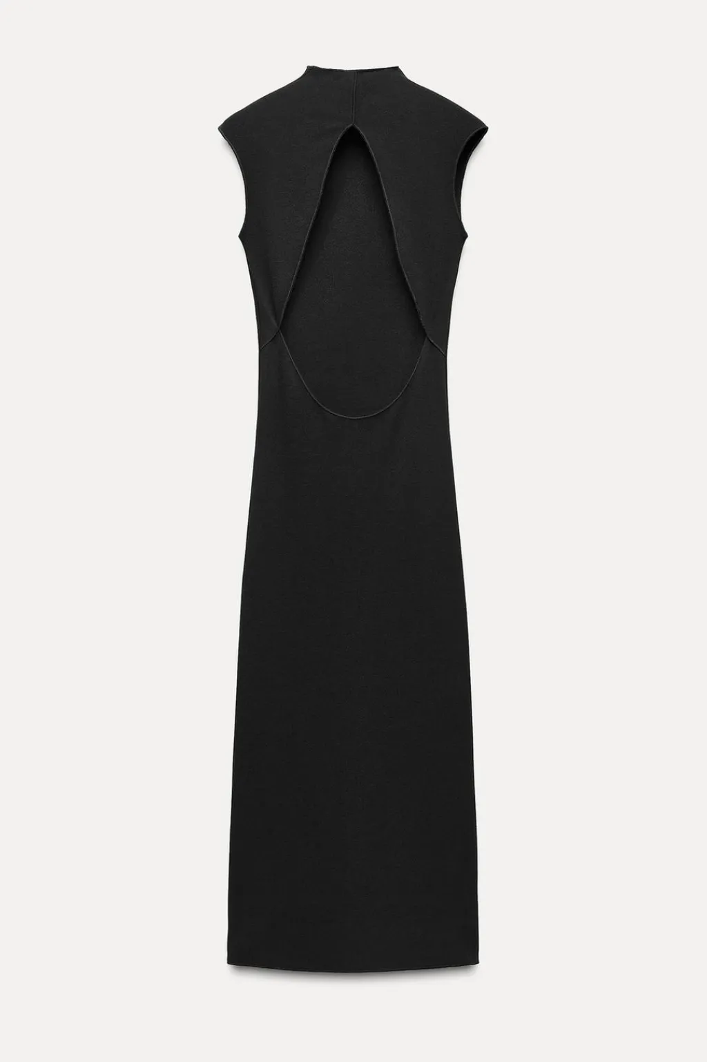 Vestido midi confeccionado en tejido tipo punto. Cuello perkins y manga corta.Detalle de cut out en espalda.