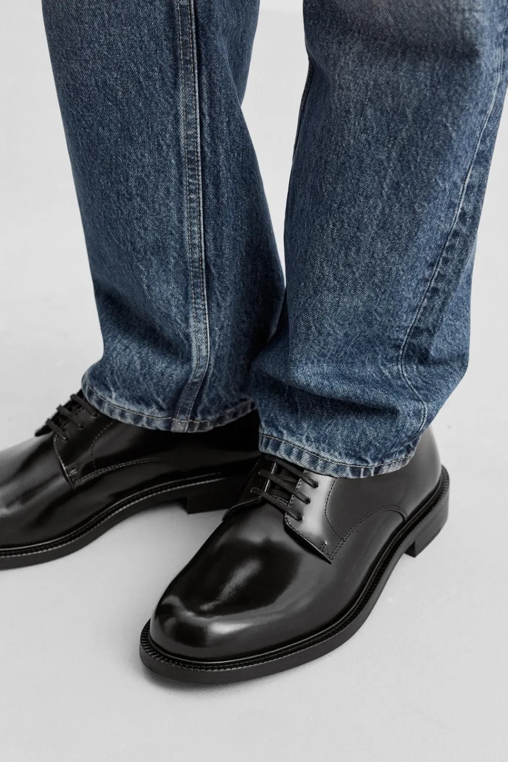 Zapato con cordones fabricado en piel con acabado brillo. Cordonera con cinco pasados. Horma redonda. Forro interior y plantilla en piel.