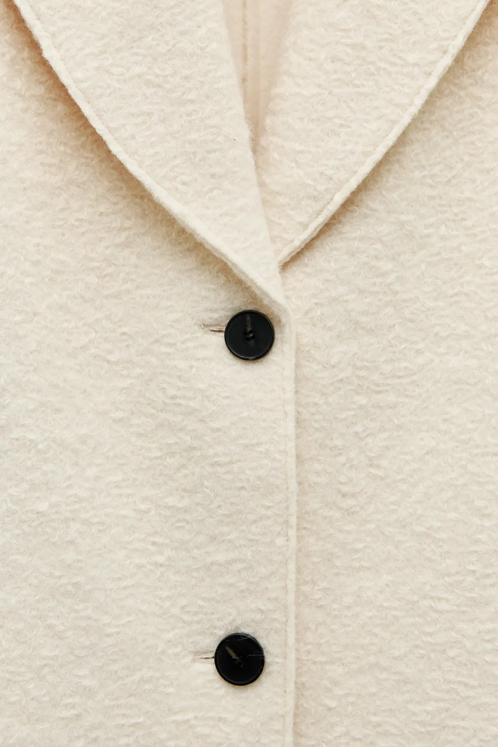 Abrigo de cuello solapa y manga larga. Bolsillos delanteros de vivo. Cierre frontal con botones.