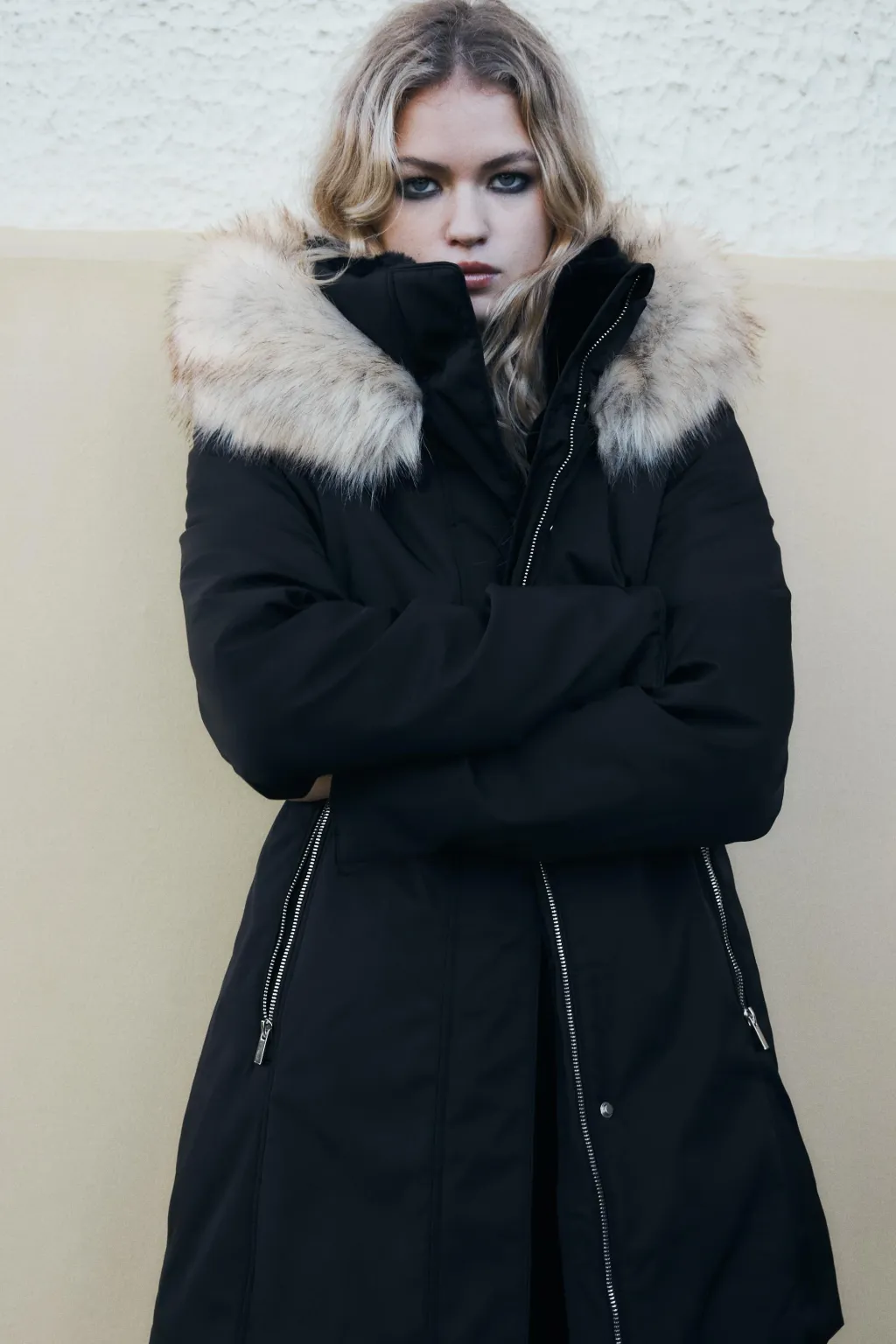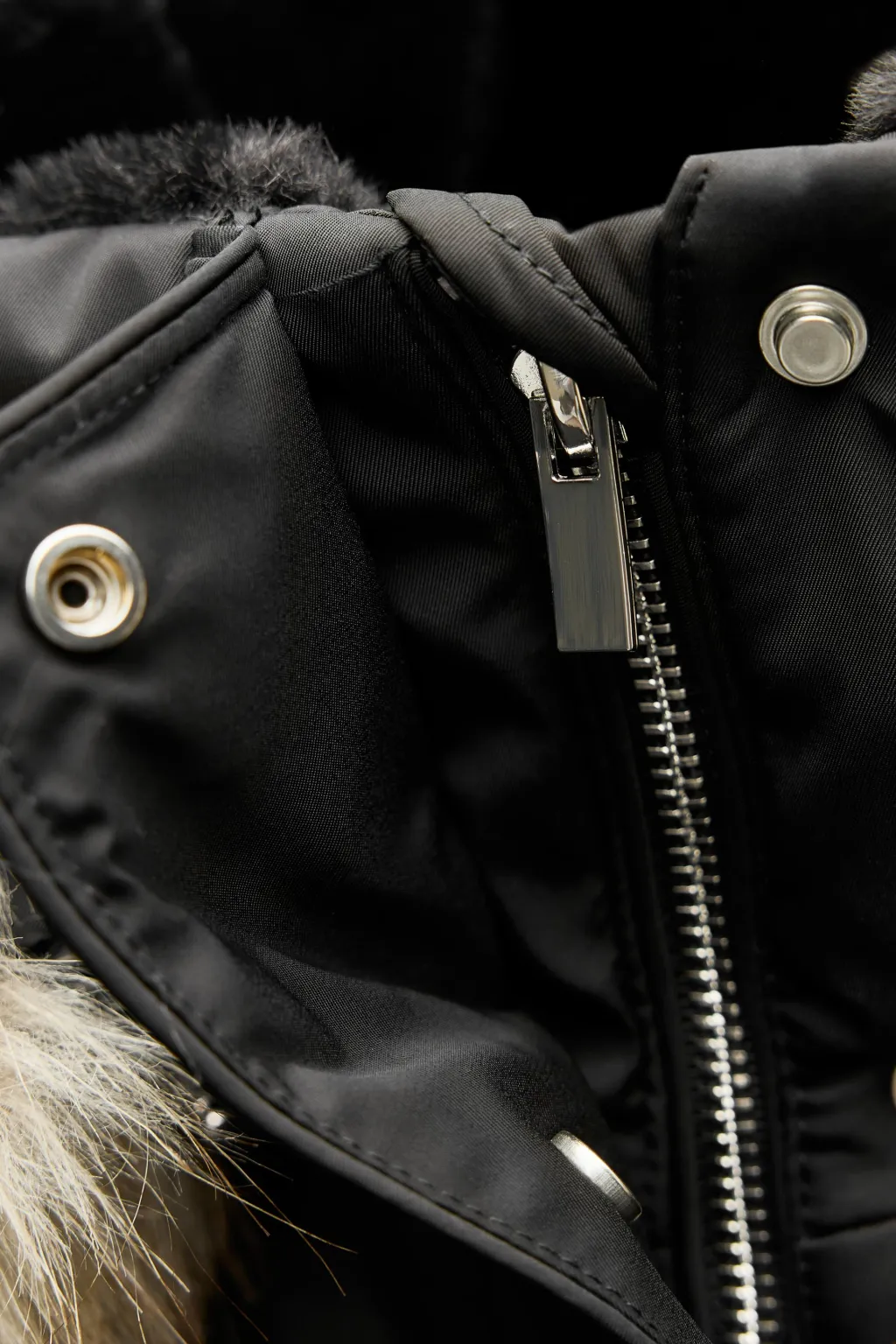 Anorak resistente al agua y al viento con aislamiento térmico para climas fríos. Cuello subido con capucha desmontable efecto pelo y cordones elásticos con stoppers. Manga larga acabada con puño interior efecto neopreno. Acolchado interior y tejido efecto pelo. Tirantes elásticos funcionales en interior. Bolsillos delanteros con forro polar y cierre de cremallera. Cintura entallada con elástico interior. Cierre frontal con cremallera y solapa con botones a presión.