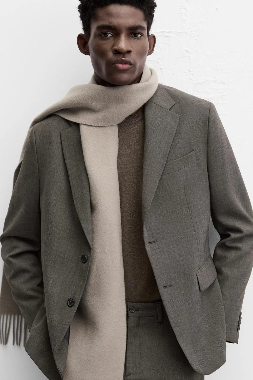 Blazer regular fit confeccionada en tejido con lana. Cuello con solapas de muesca y manga larga acabada en puño con botón. Bolsillo de vivo en pecho y de solapa en cadera. Detalle de bolsillo interior. Bajo con aberturas en espalda. Cierre frontal de botonadura.