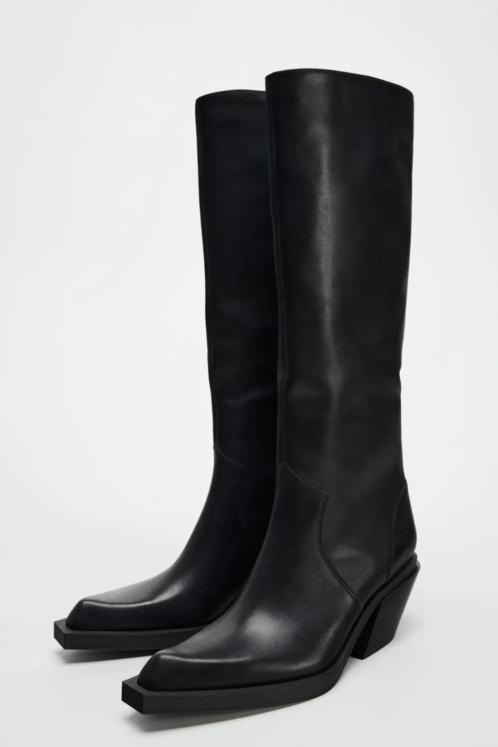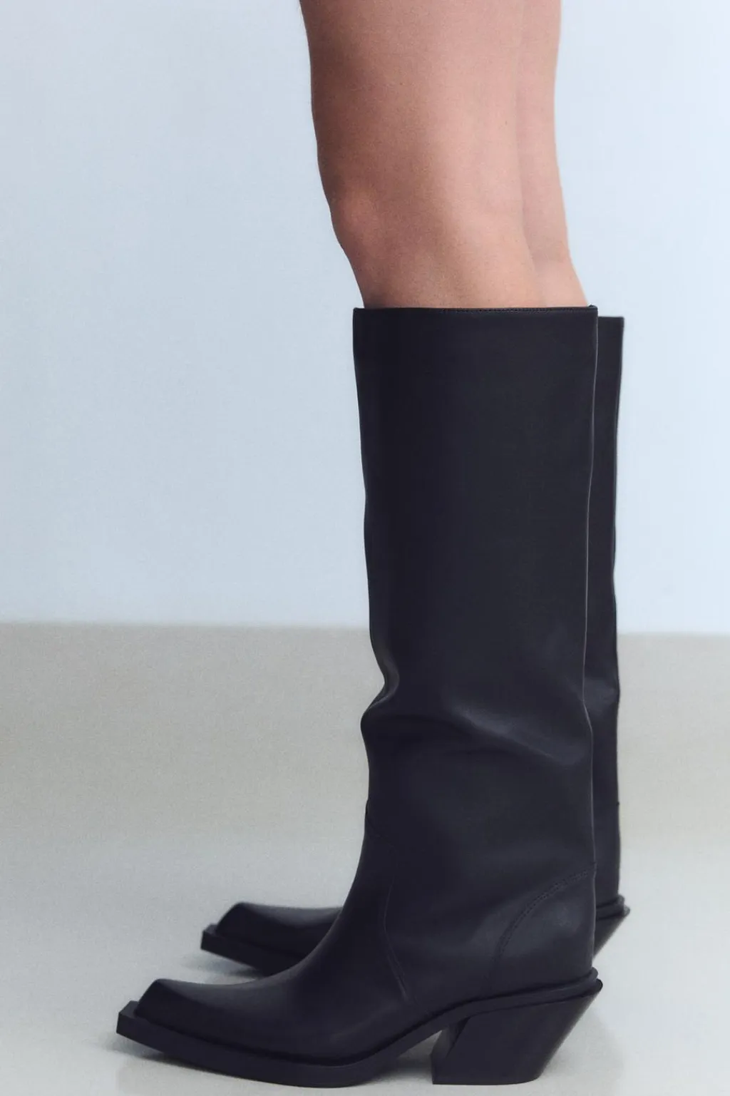 Zapato tipo bota tacón en piel. Estilo cowboy. Acabado en punta.