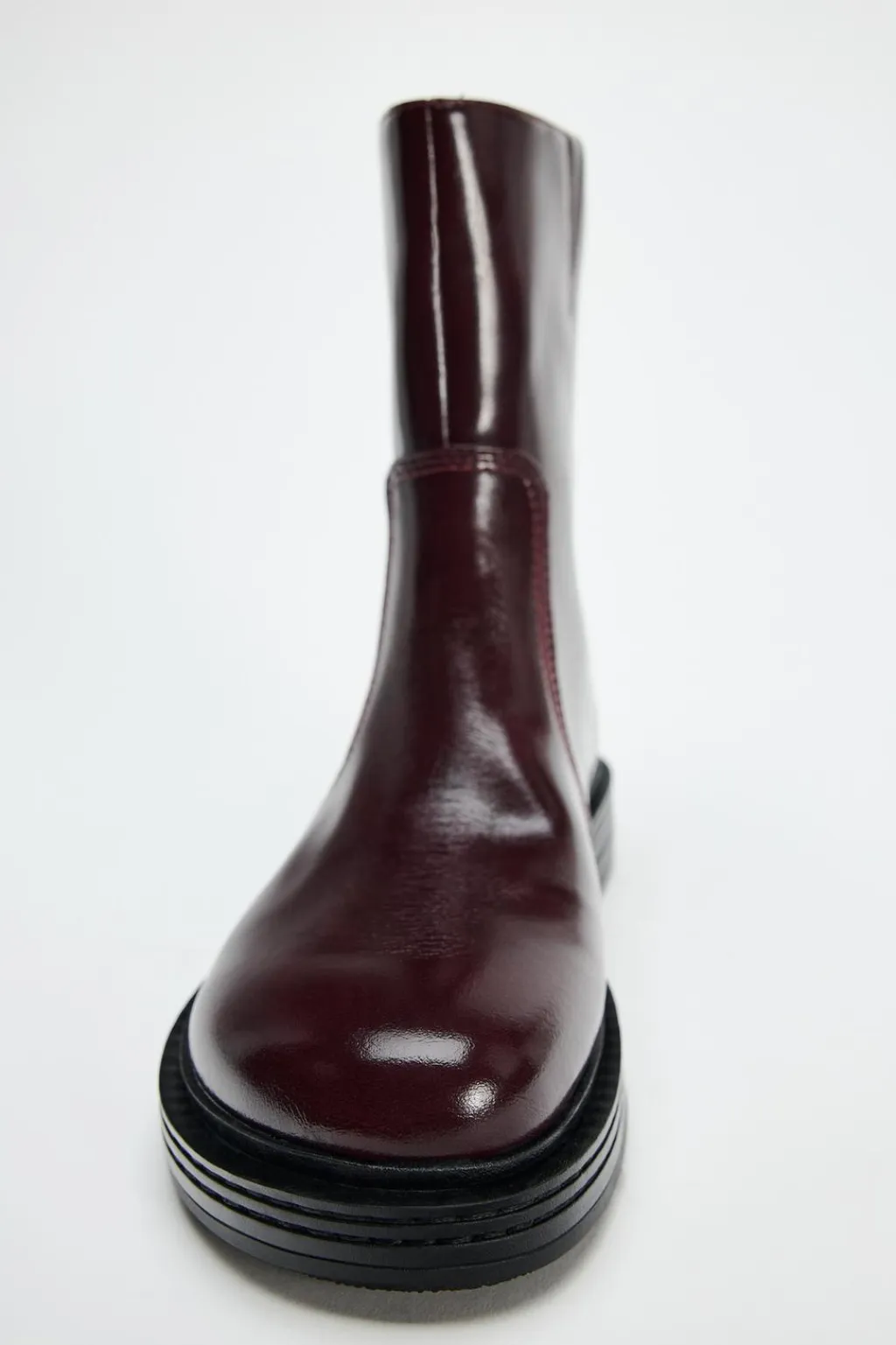 Zapato tipo botín plano. Detalle de pespunte en el corte. Efecto desgastado. Elástico en la caña.