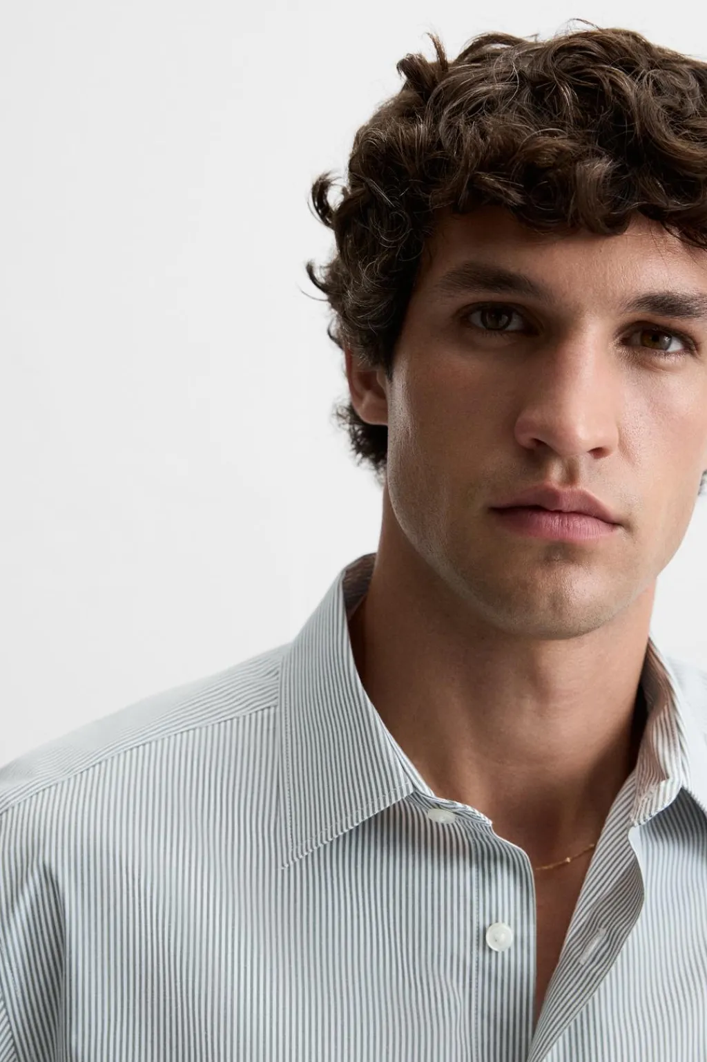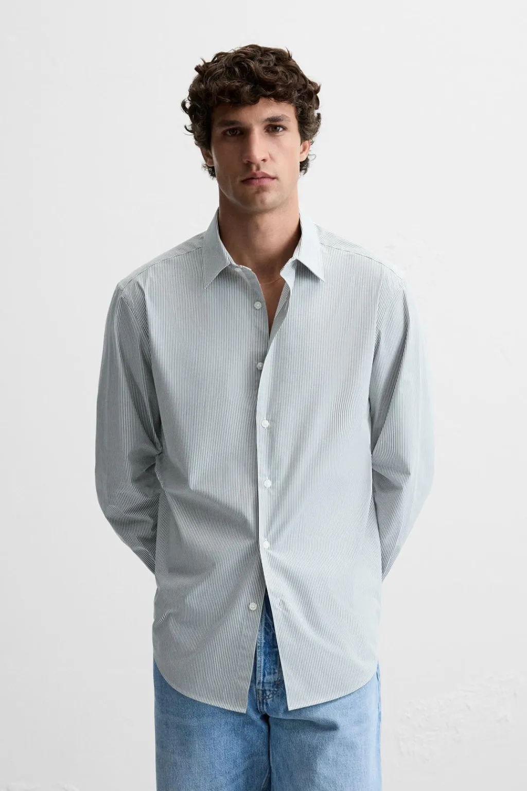 Regular fit. Cuello italiano y manga larga acabada en puño con botón. Cierre frontal de botonadura.