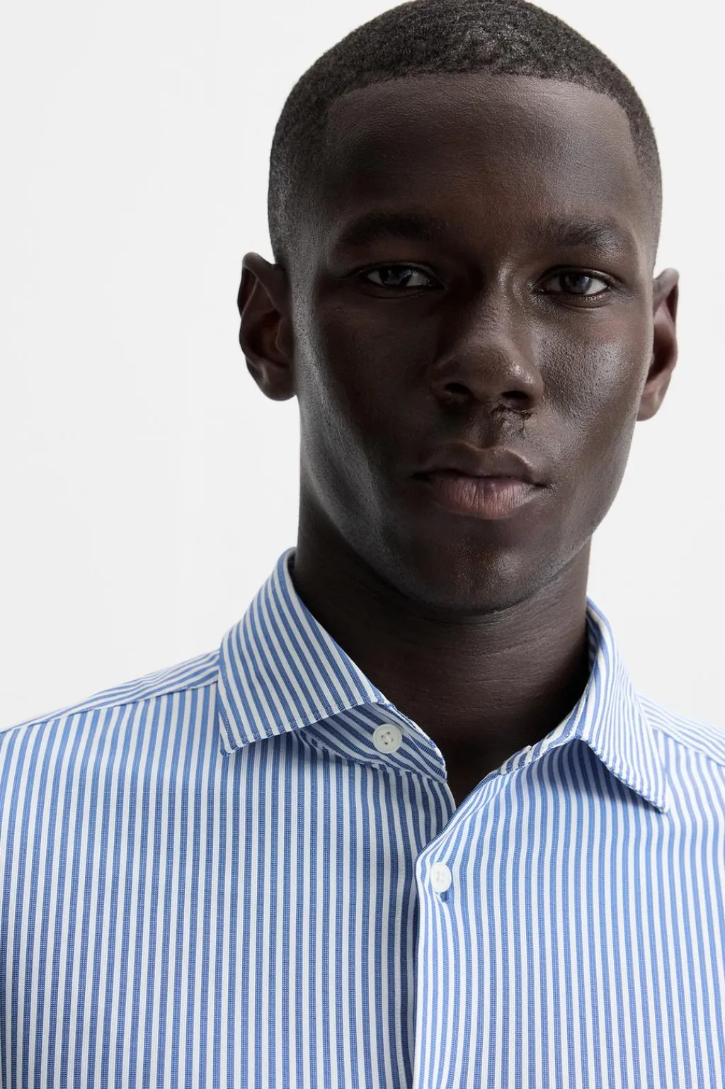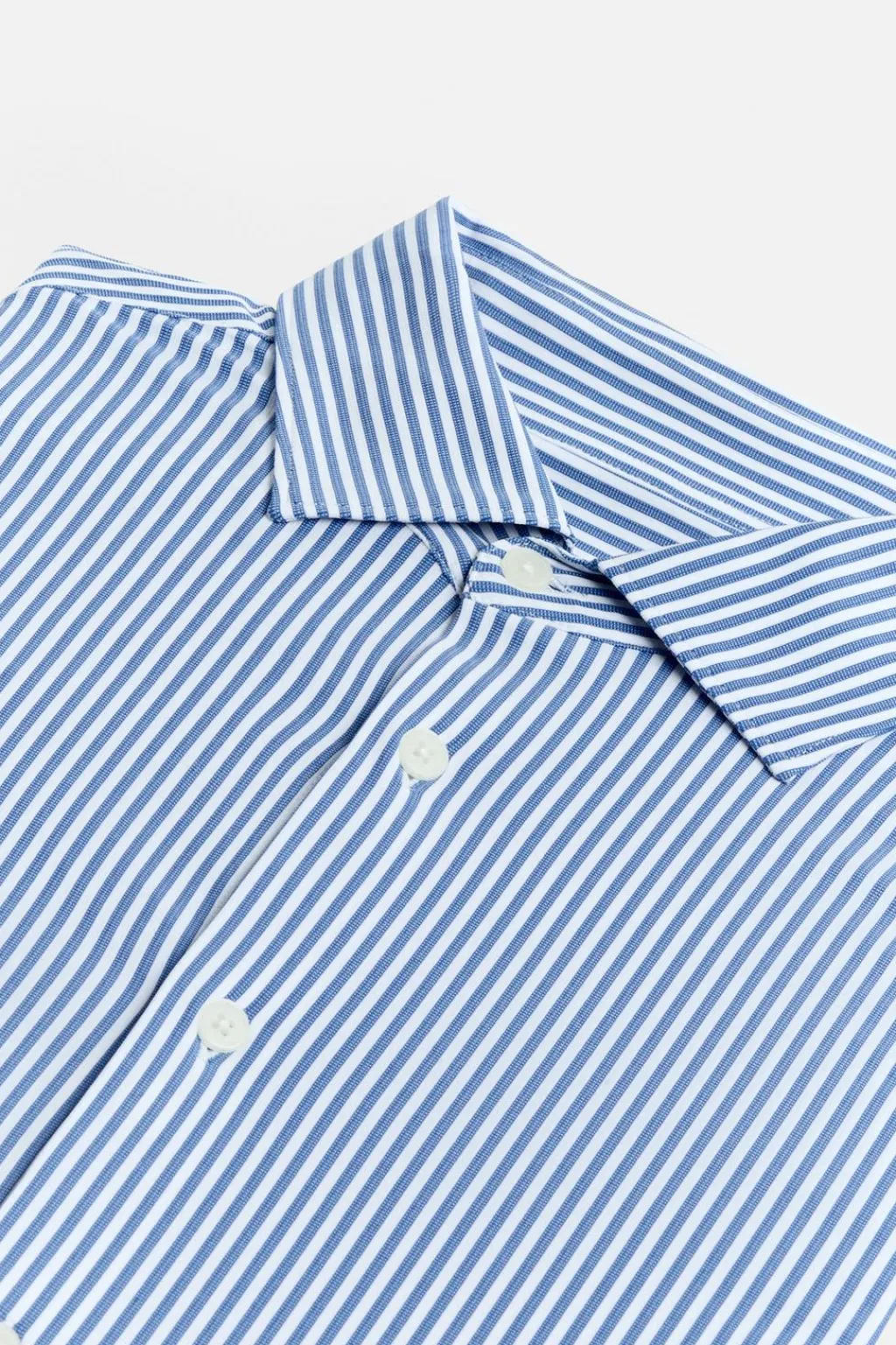 Camisa slim fit confeccionada en un tejido que minimiza la necesidad de plancha después del lavado. Cuello italiano y manga larga acabada en puño con botón. Cierre frontal de botonadura.