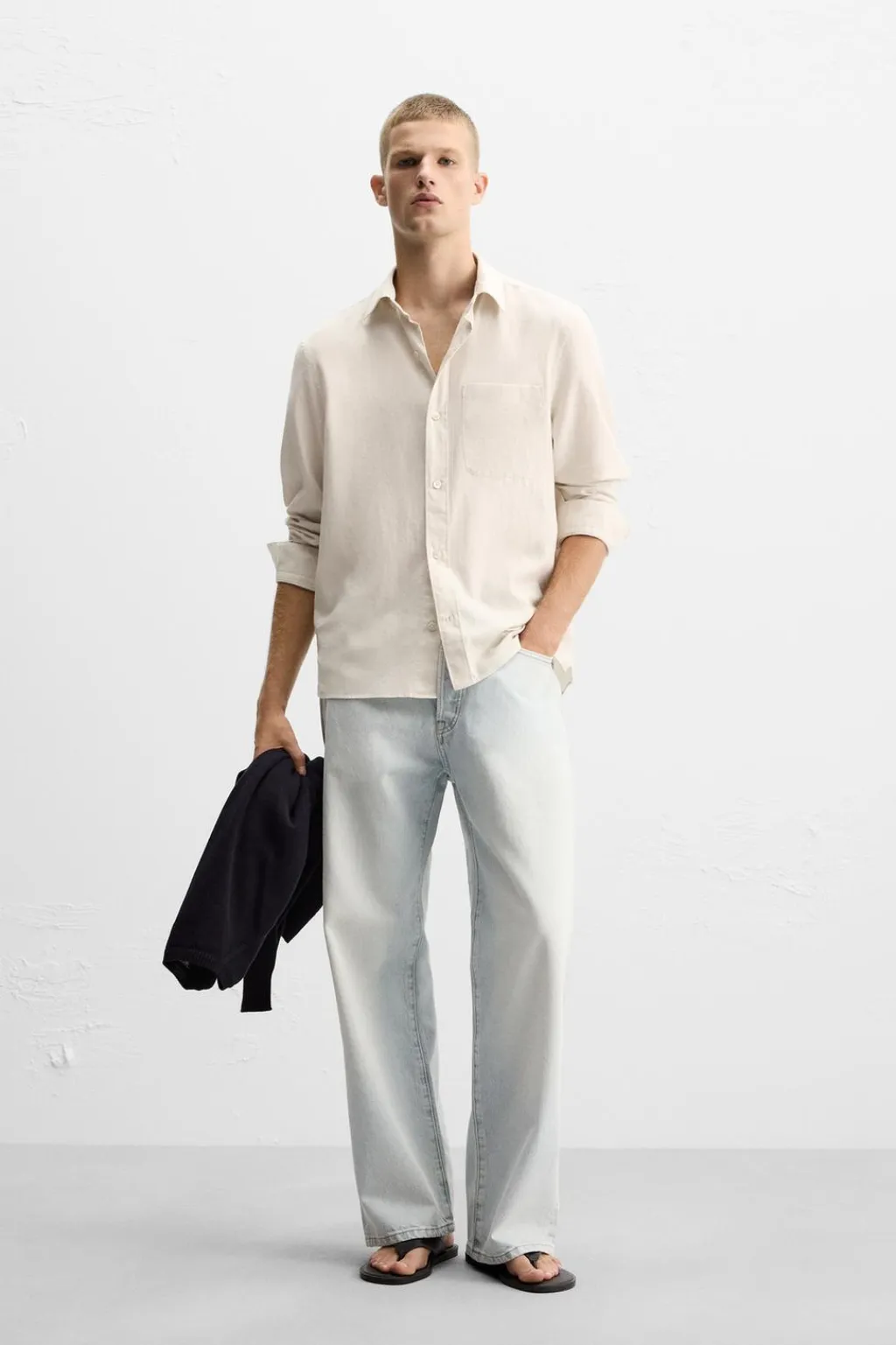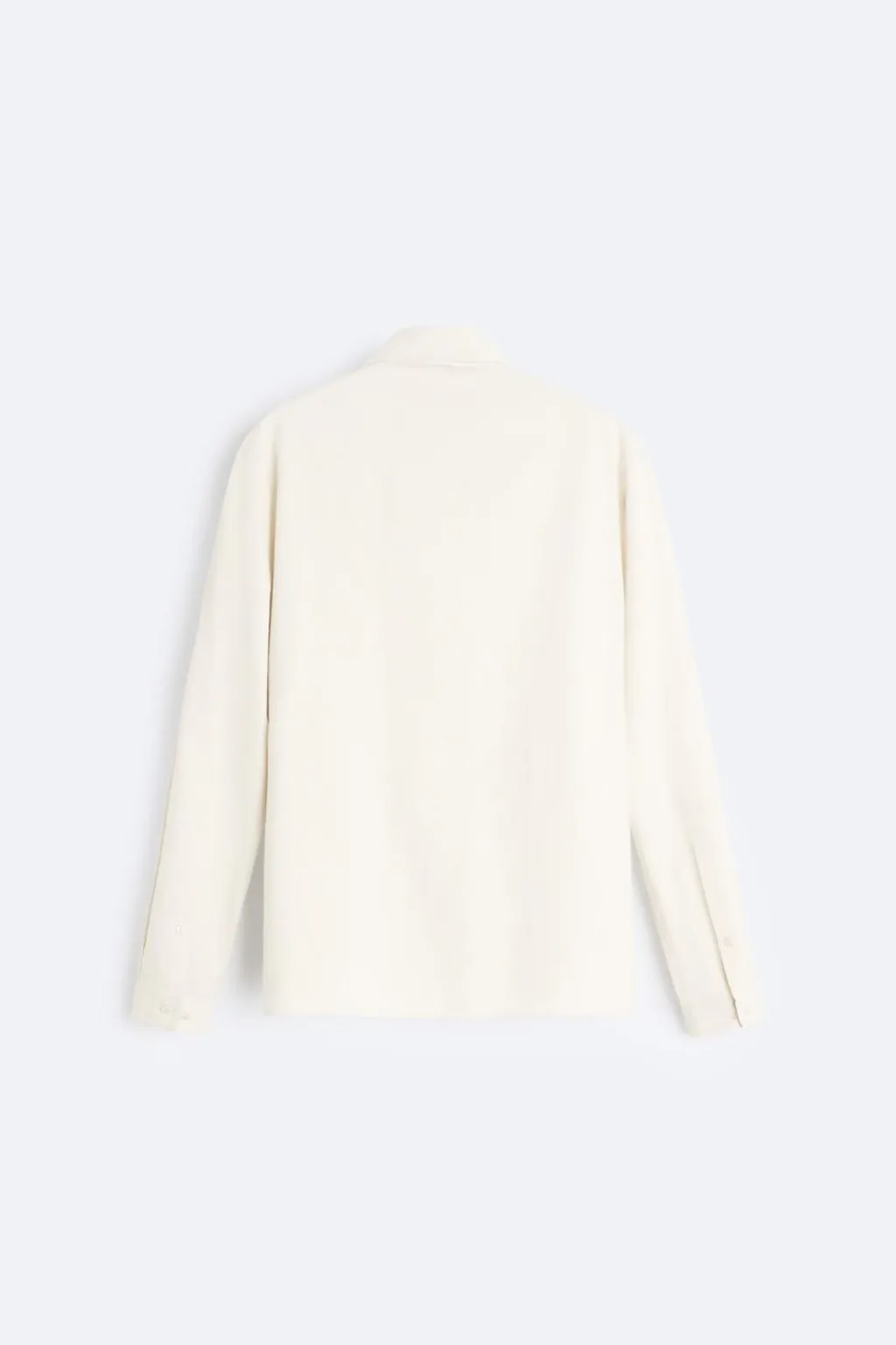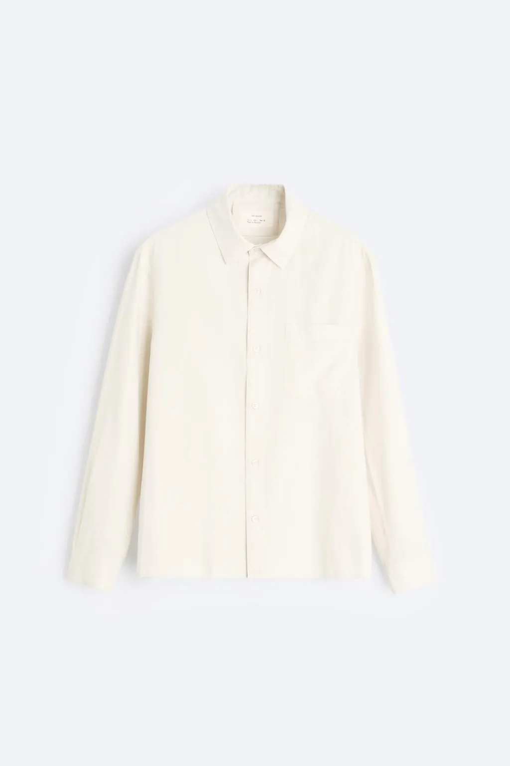 Camisa regular fit confeccionada en tejido con estructura de algodón. Cuello solapa y manga larga acabada en puño con botón. Bolsillo plastrón en pecho. Bajo con aberturas laterales. Cierre frontal de botonadura.