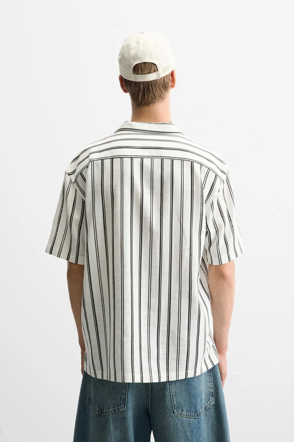 Camisa relaxed fit confeccionada en tejido con viscosa. Cuello bowling y manga corta. Cierre frontal de botonadura.