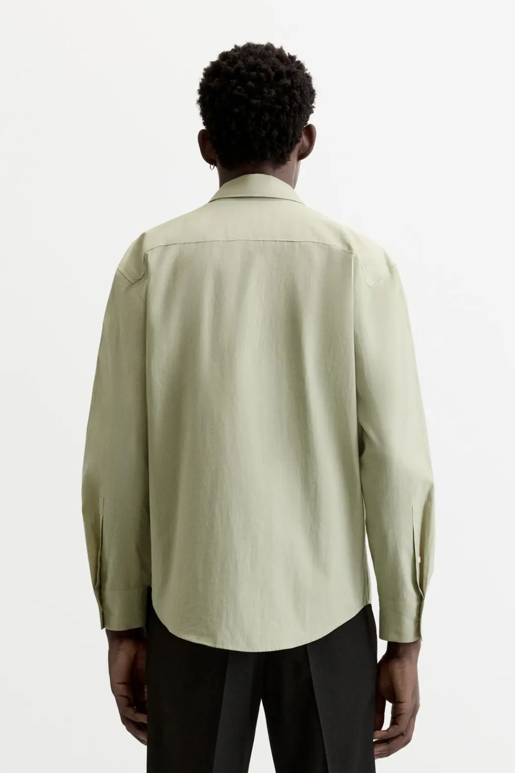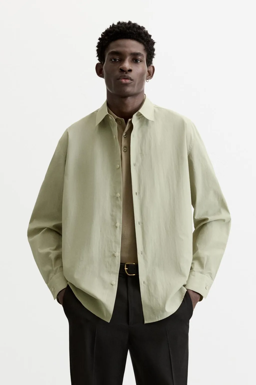Camisa relaxed fit confeccionada en popelín de algodón. Cuello solapa y manga larga acaba en puño con botón. Cierre frontal de botonadura.