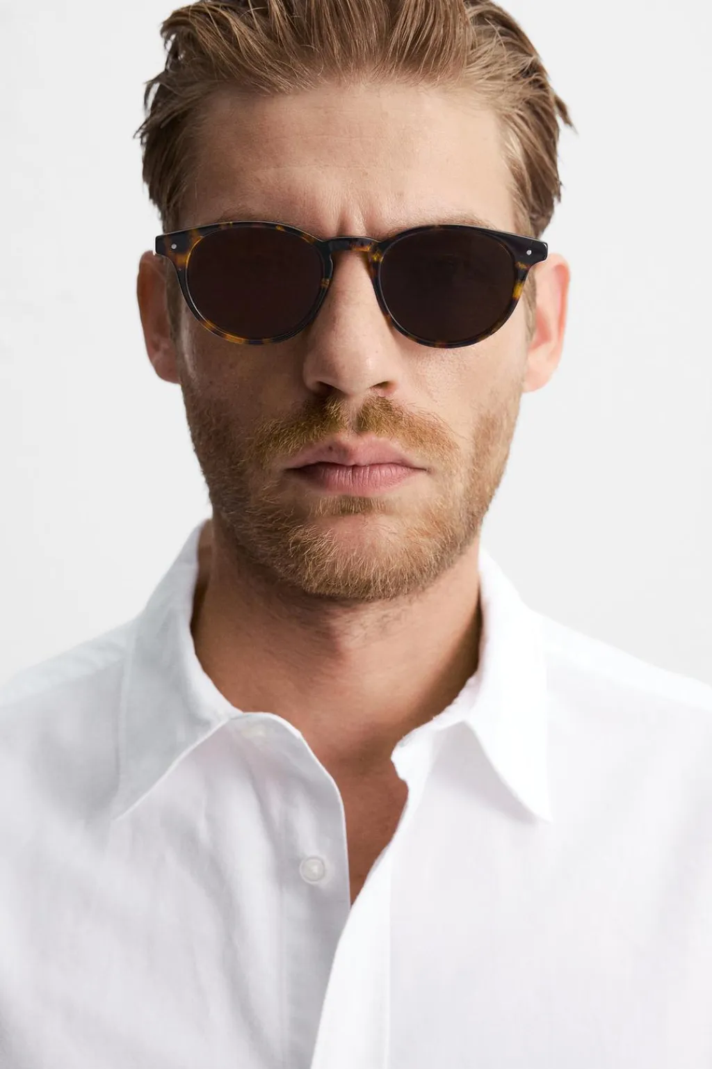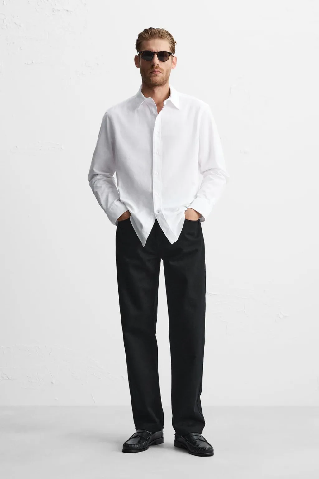 Camisa slim fit confeccionada en tejido de algodón. Cuello italiano y manga larga acabada en puño con botón. Cierre frontal de botonadura.