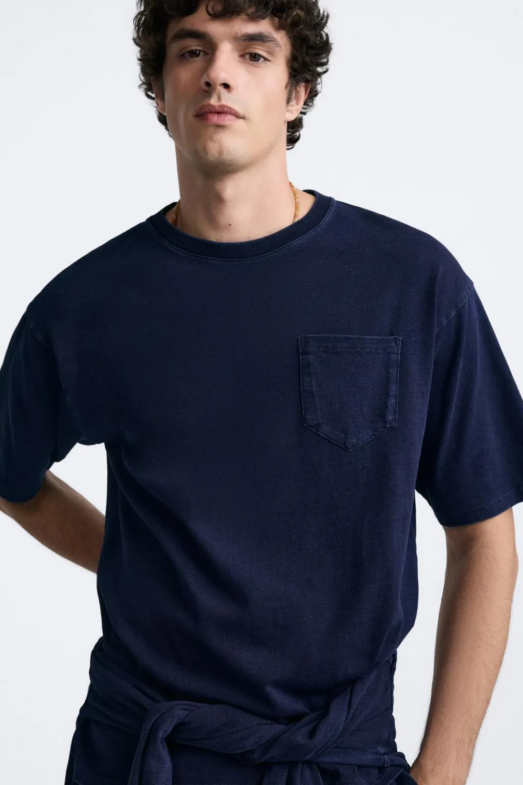 Camiseta relaxed fit confeccionada en tejido de algodón tintado en índigo.