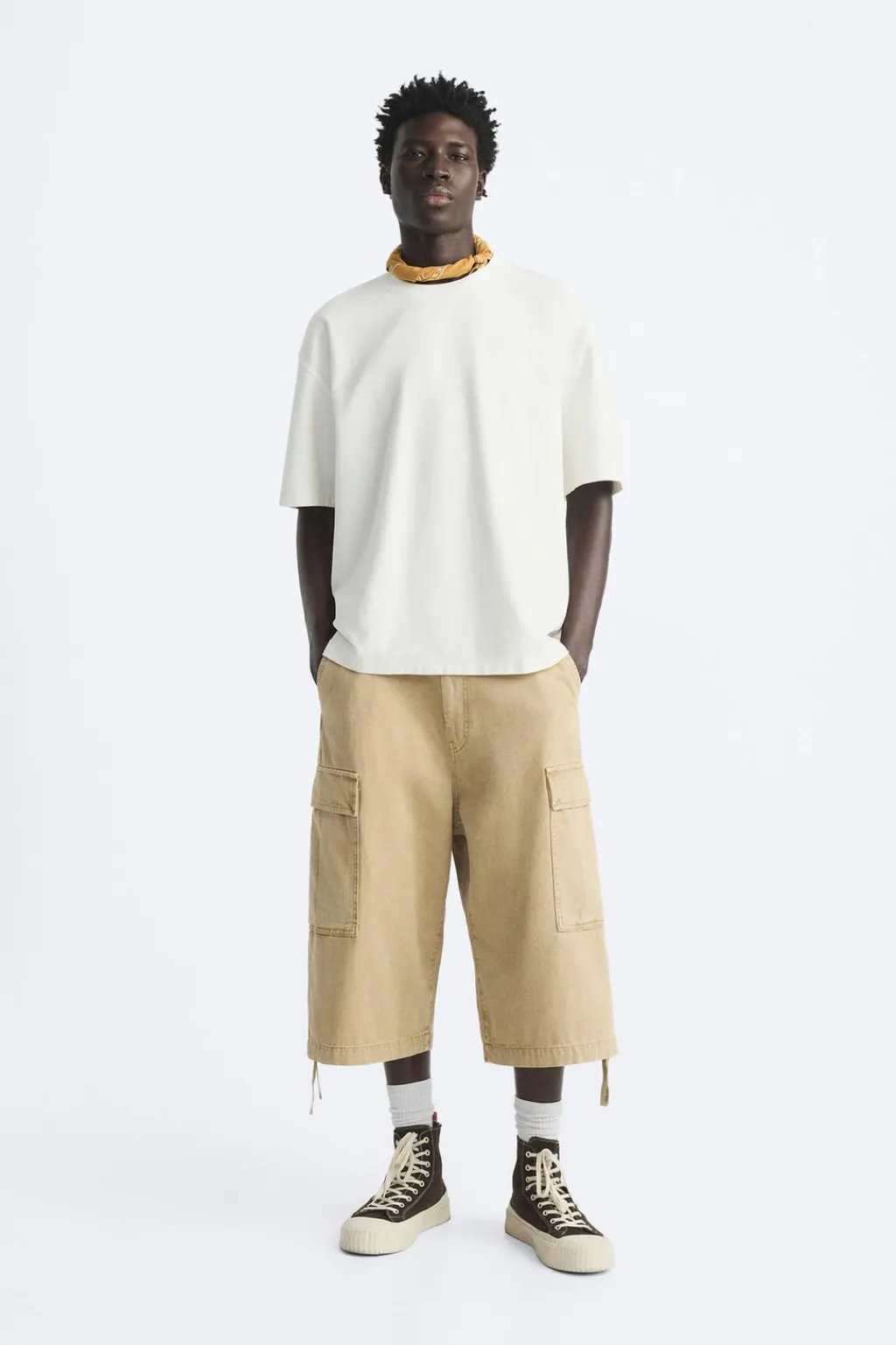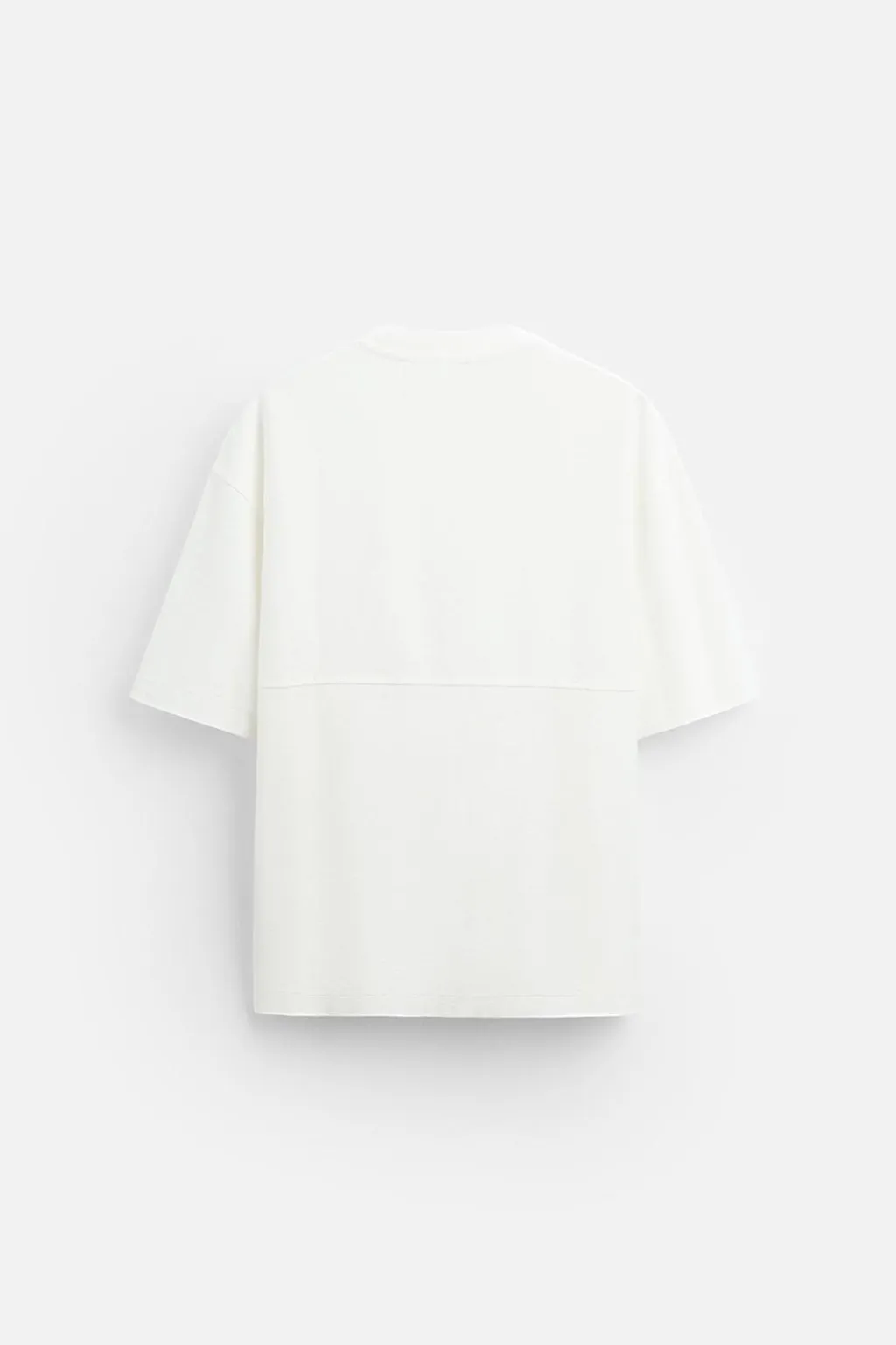 Camiseta boxy fit confeccionada en algodón compacto. Cuello redondo y manga corta. Detalle de costura horizontal en espalda.