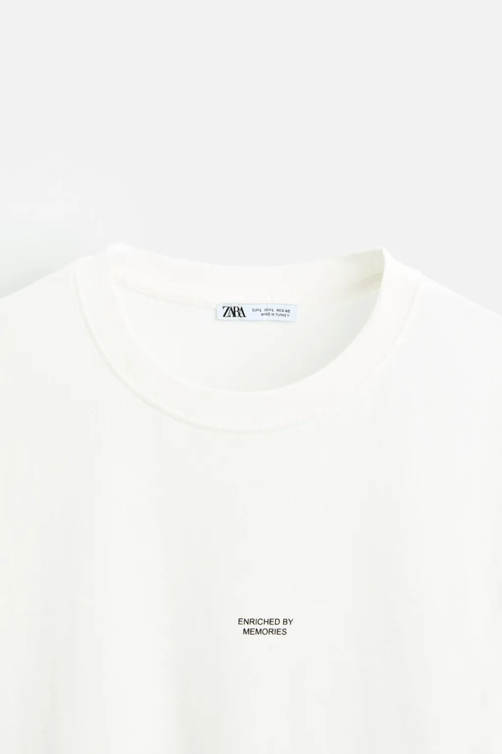 Camiseta relaxed fit. Cuello redondo y manga corta. Estampación frontal de texto combinado a contraste con aplicación de parche en espalda.