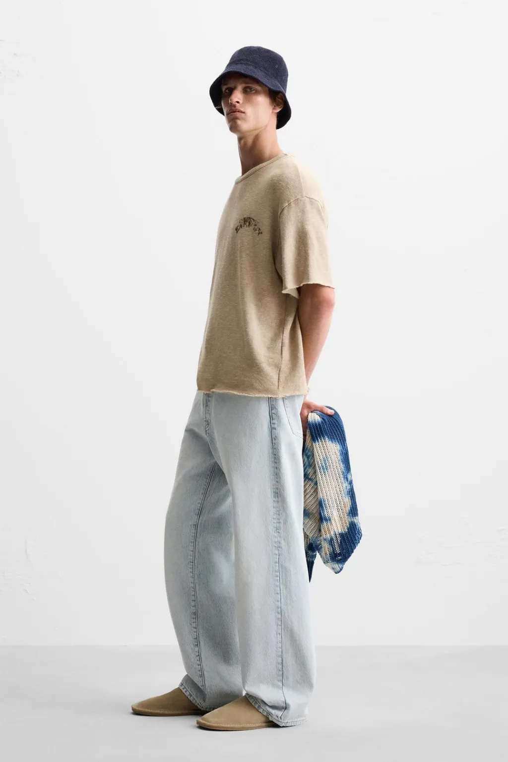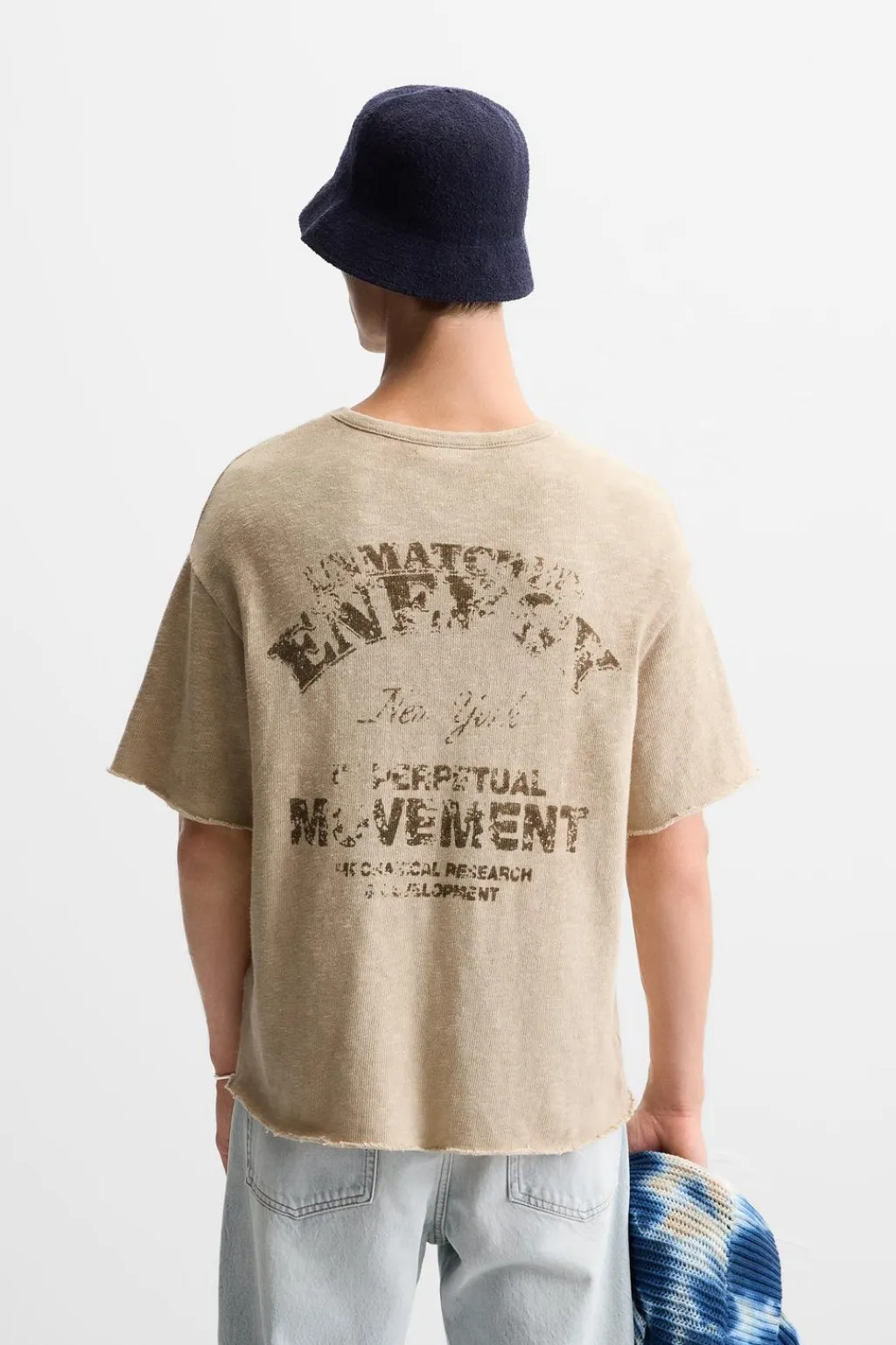 Camiseta relaxed fit de punto tejida en hilatura de algodón. Cuello redondo y manga corta. Efecto lavado. Estampación combinada a contraste en espalda.