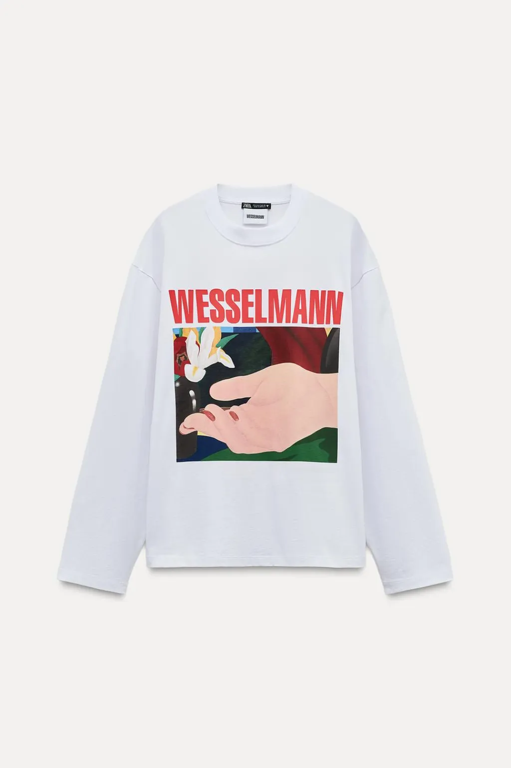 Camiseta confeccionada en algodón 100% de cuello redondo acabado en rib y manga larga. Detalle estampación©Estate of Tom Wesselmann combinada a contraste.
