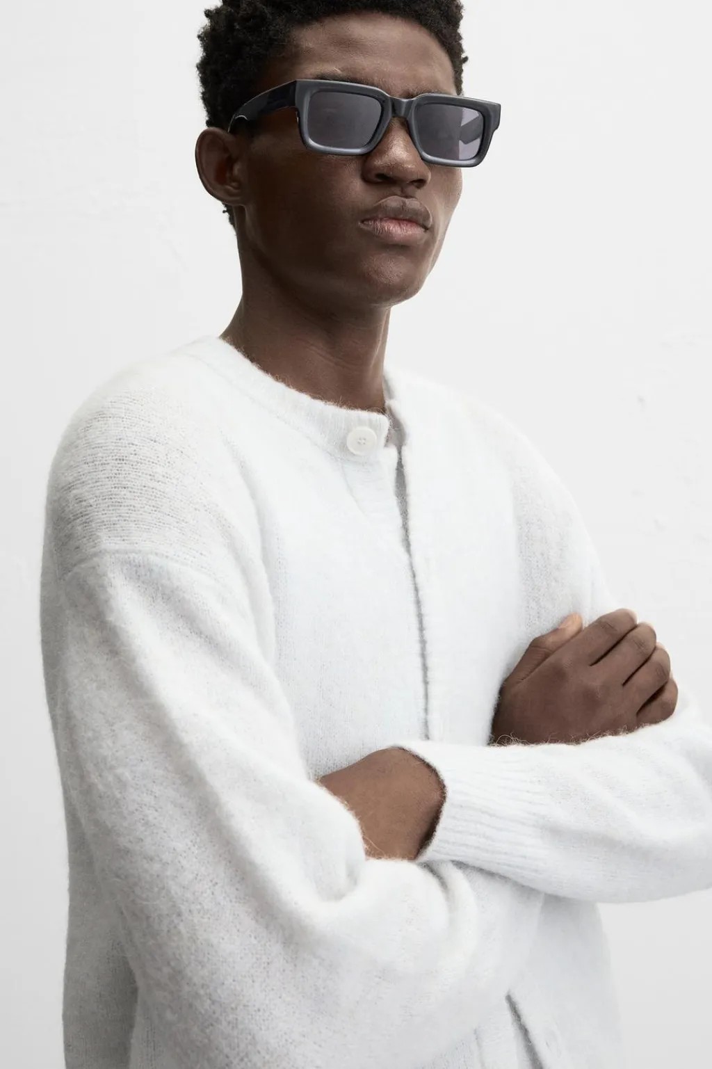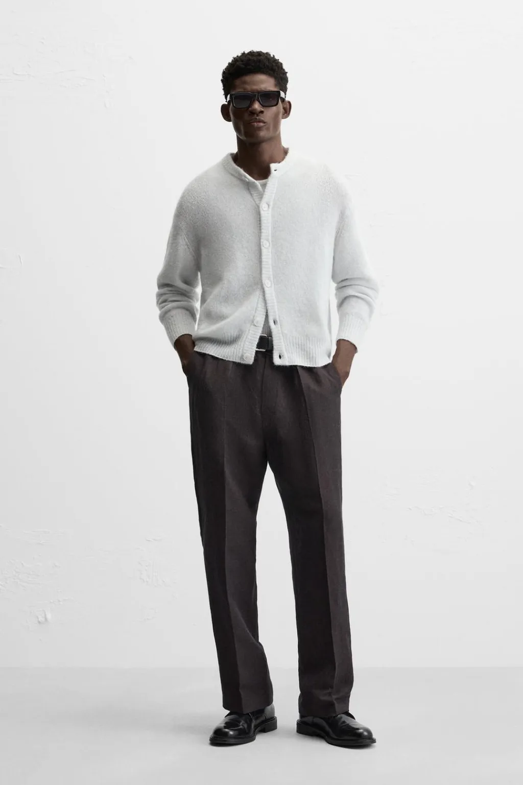 Cárdigan regular fit tejido en hilatura ligera con lana. Cuello redondo y manga larga. Acabados en rib. Cierre frontal de botonadura.