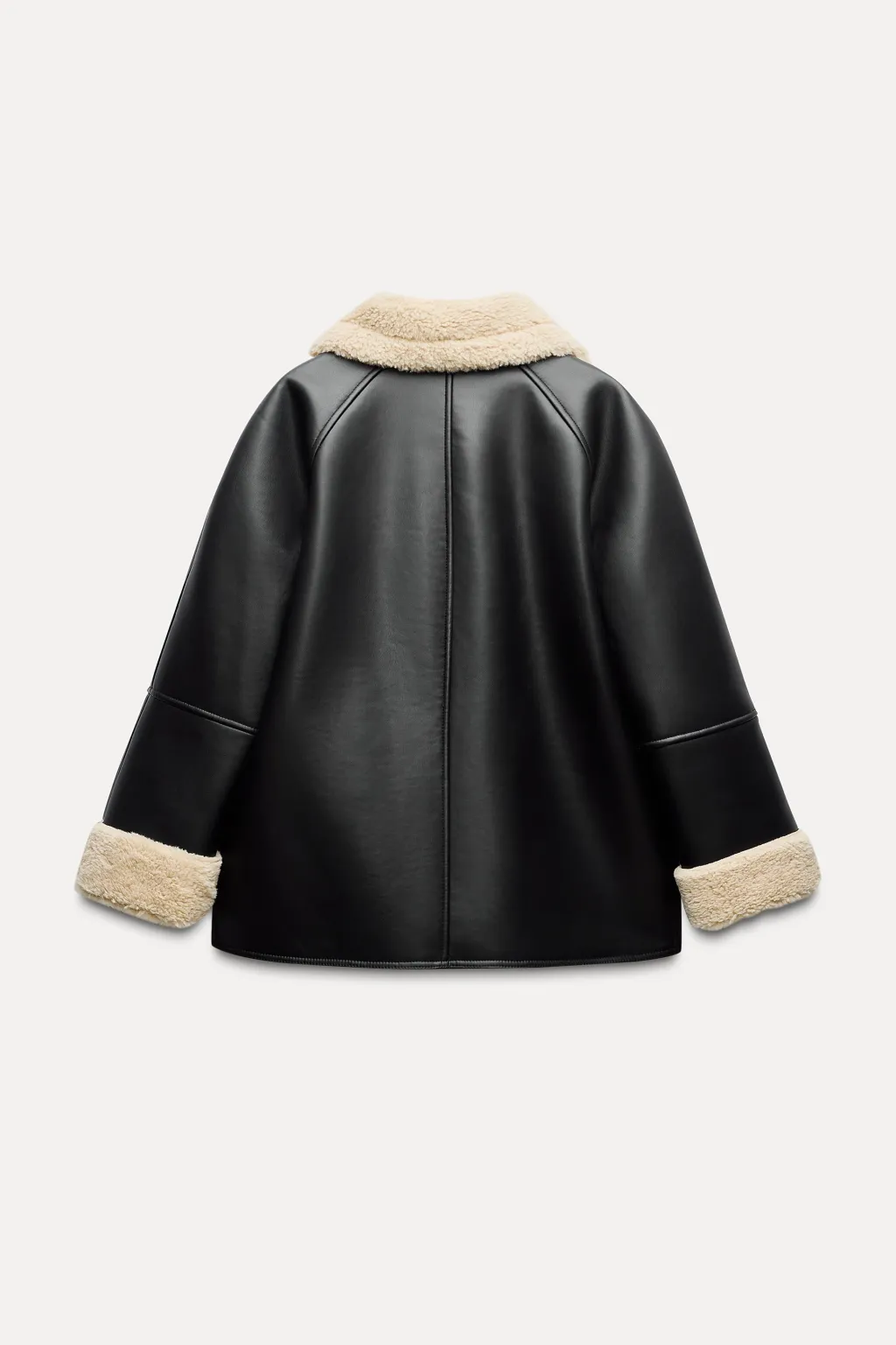 Cazadora de cuello solapa y manga larga. Bolsillosen delantero. Interior en borreguillo combinado a contraste. Cierre frontal con botones.
