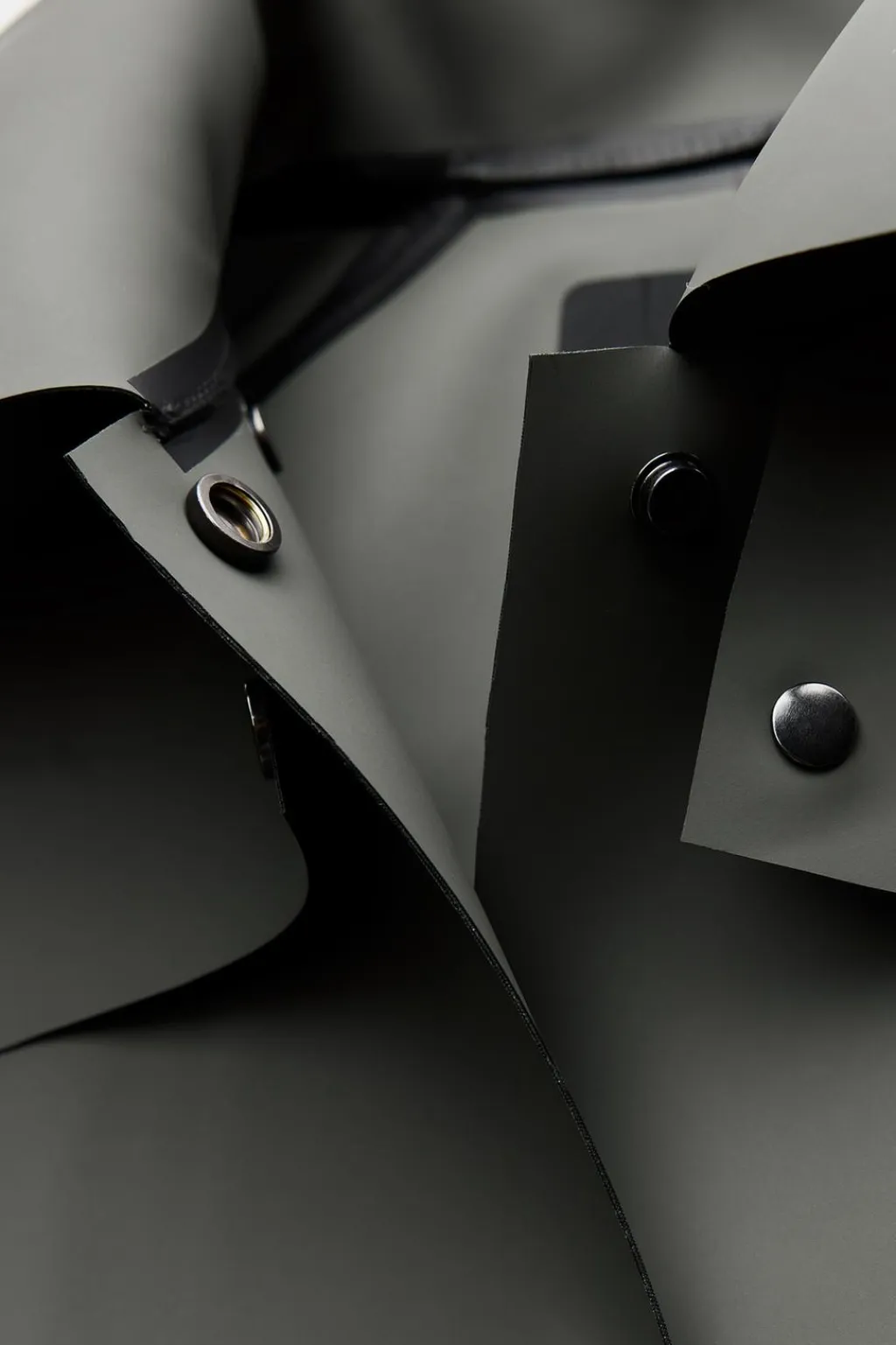 Chaqueta corta engomada con capucha y manga larga. Bolsillos de plastrón en delantero. Protección contra la penetración de agua durante períodos de exposición corta. Costuras termoselladas. Cierre frontal con botones a presión.
