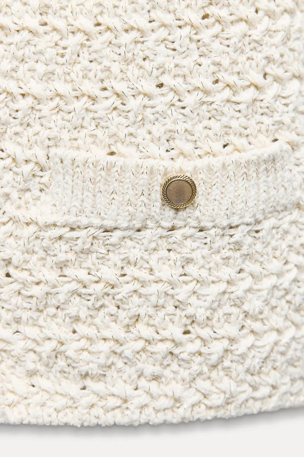 Chaqueta de cuello pico y manga francesa. Falsos bolsillos de vivo delanteros. Tejido con hilo metalizado. Cierre frontal con botones dorados.