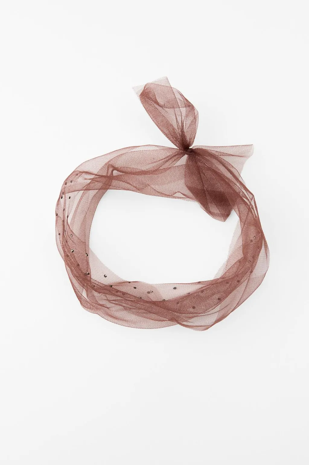 Collar tipo choker confeccionado en tejido de tul. Detalle aplicación de strass combinado a contraste. Cierre con lazada.