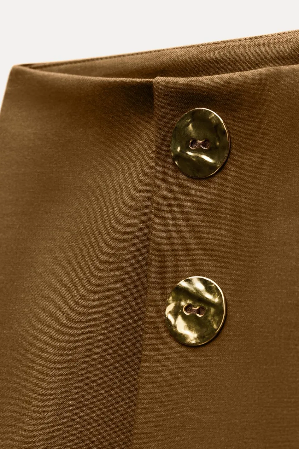 Falda corta de tiro medio con detalle de tablas. Botones metálicos en delantero. Cierre en espalda con cremallera oculta en costura.