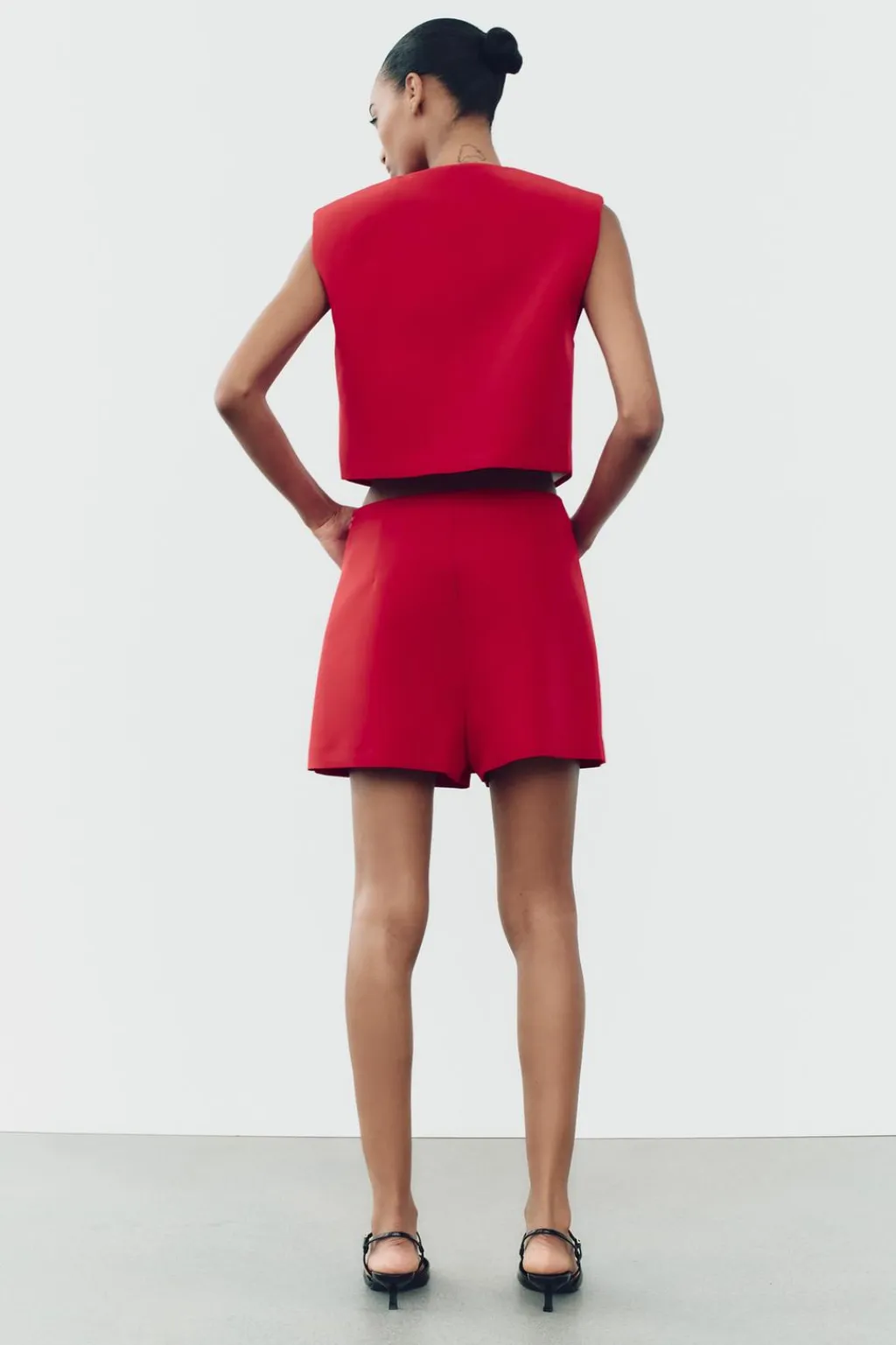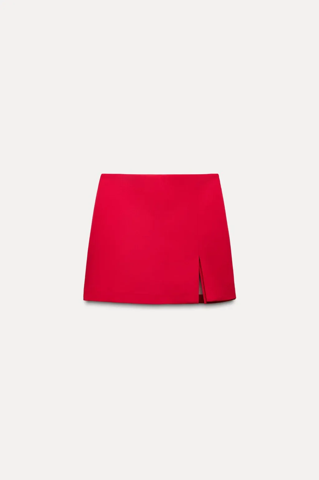 Falda pantalón de tiro alto con abertura en el bajo. Cierre lateral con cremallera oculta en costura.