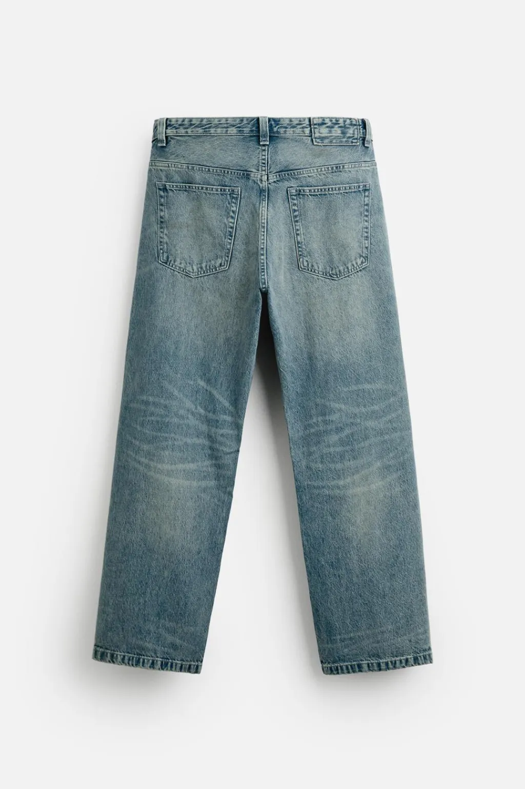 Jeans baggy fit. Cinco bolsillos. Efecto lavado. Cierre frontal con cremallera y botón.