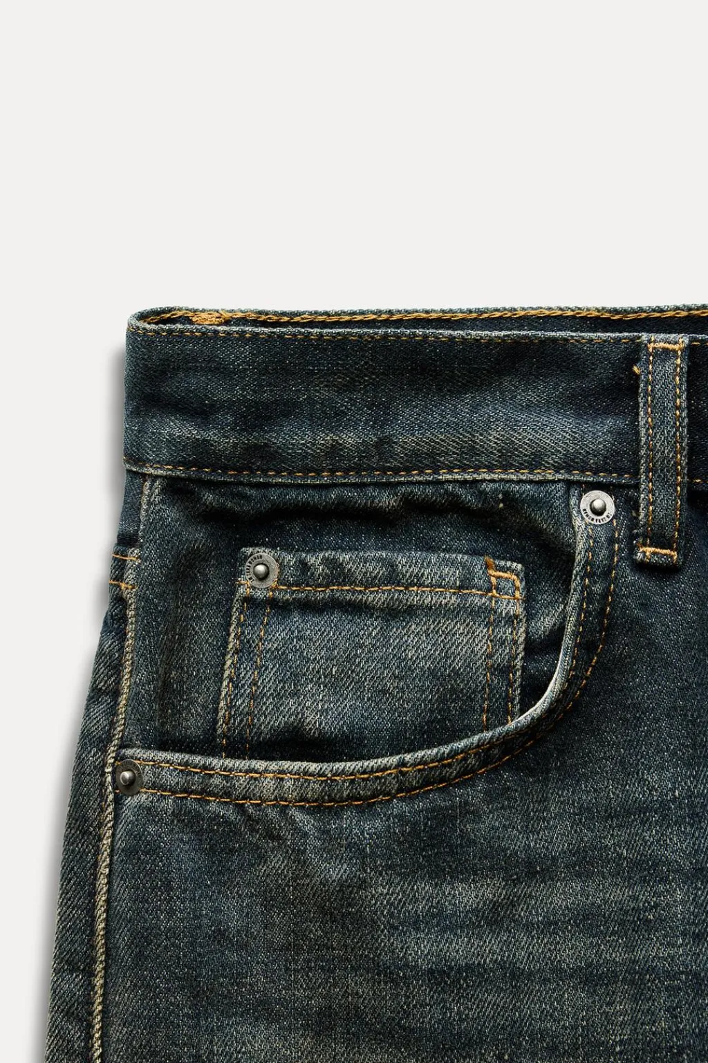 Jeans de tiro medio y cintura con trabillas. Cinco bolsillos. Efecto lavado. Cierre frontal con cremallera y botón.