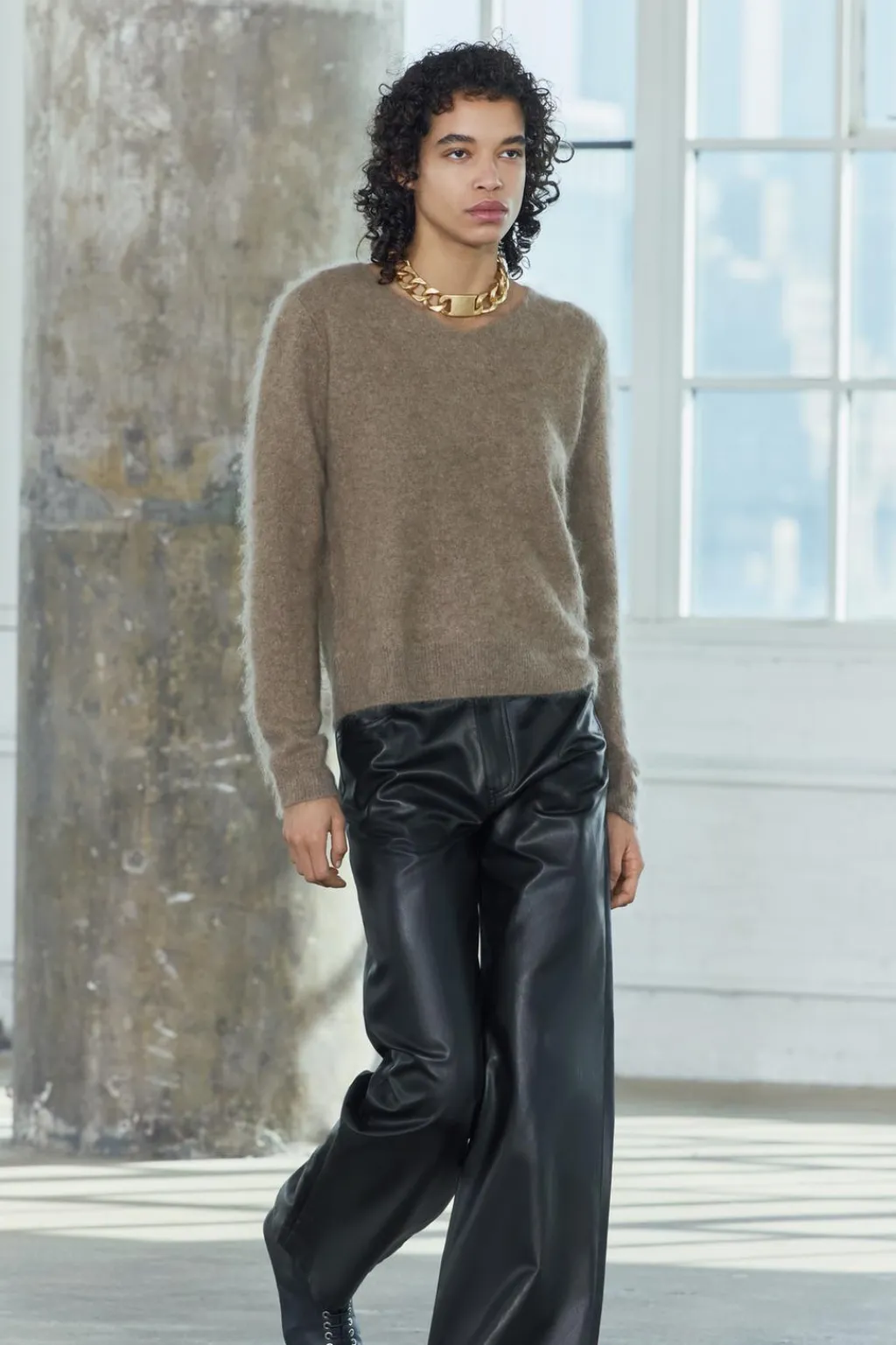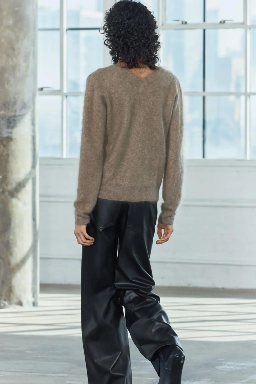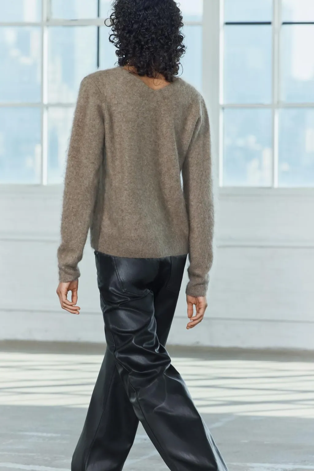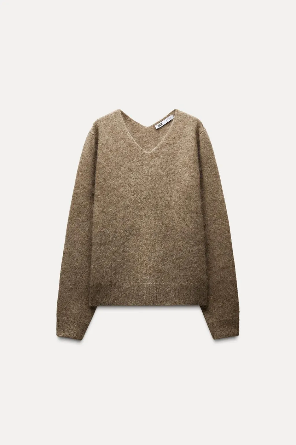 Jersey confeccionado con lana y cashmere. Cuello pico y manga larga.
