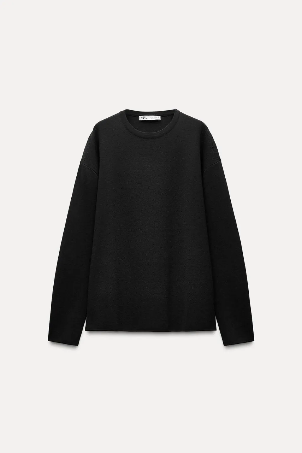 Jersey de cuello redondo y manga larga. Bajo con aberturas laterales.