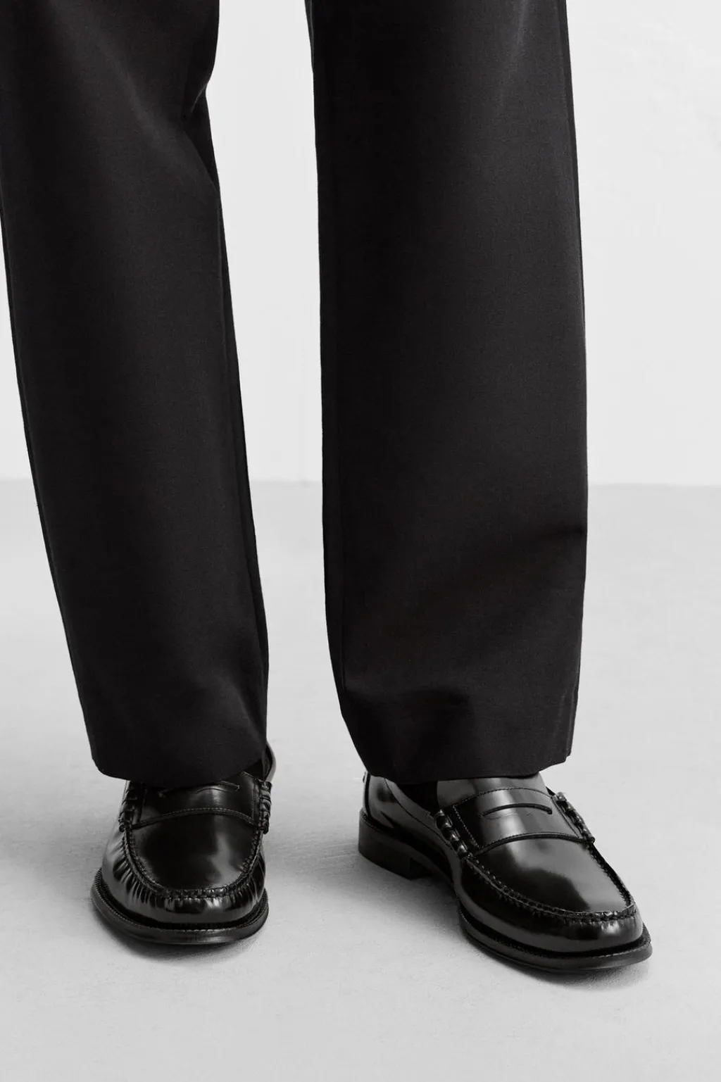 Zapato tipo mocasín fabricado en piel con acabado brillo. Detalle ornamental de antifaz en el empeine. Forro interior y plantilla en piel.