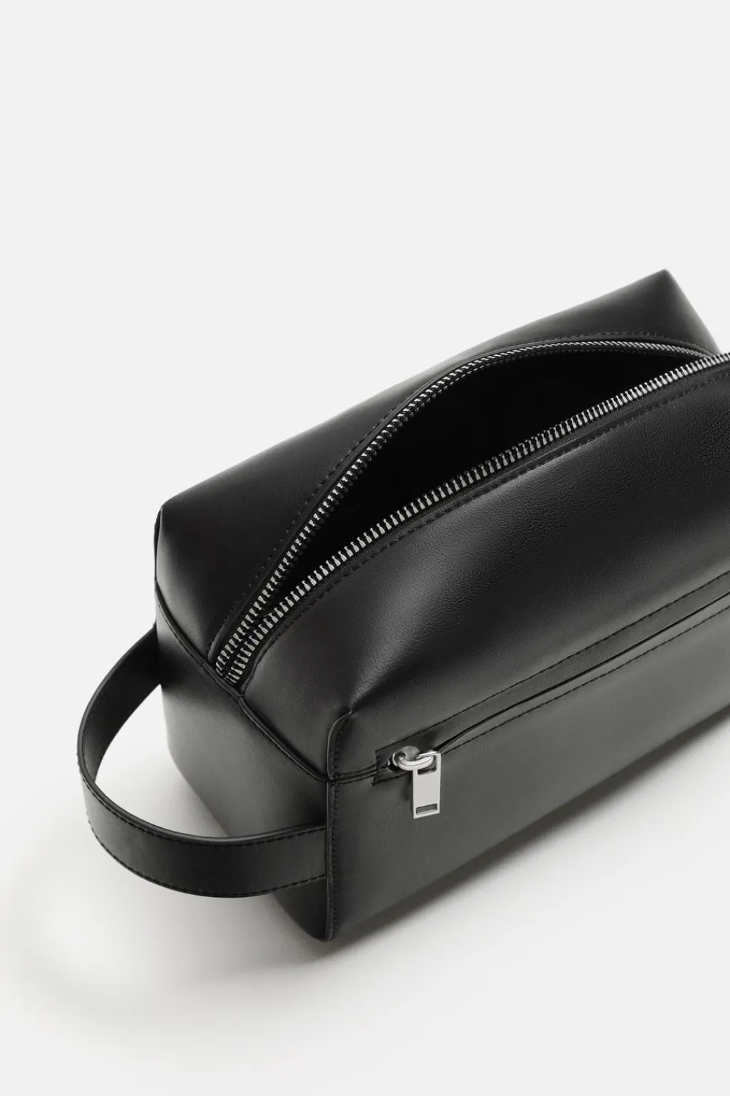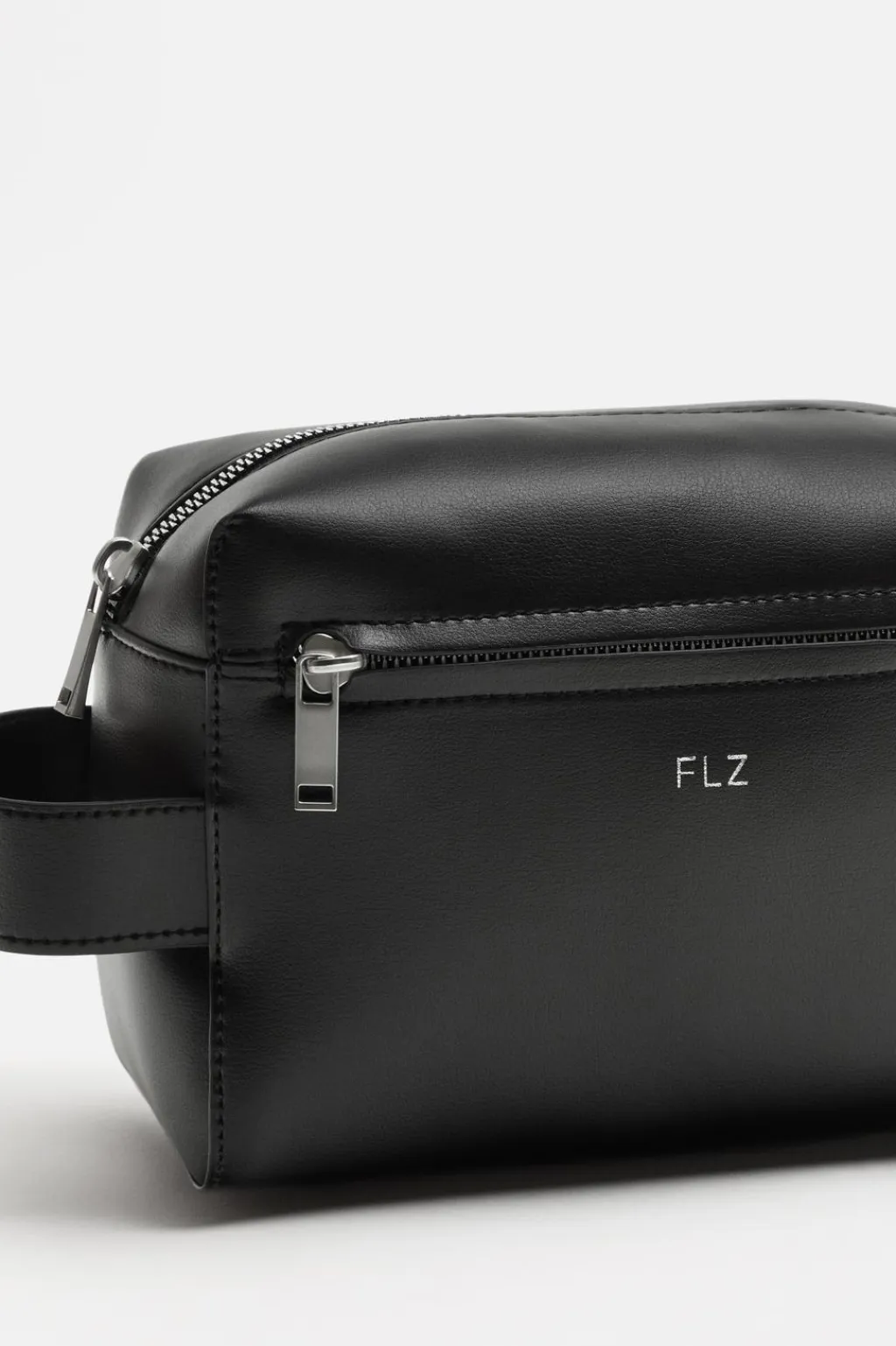 Bolsa de aseo. Compartimento principal con cierre mediante cremallera. En su interior tiene un bolsillo pequeño con cremallera. En la parte frontal dispone de un bolsillo con cierre con cremallera. Cuenta con asa de mano en un lateral.
